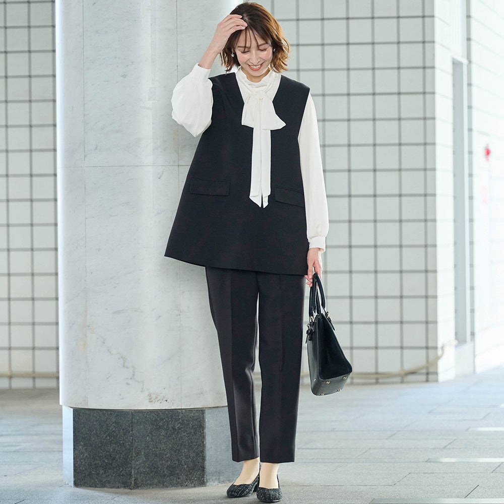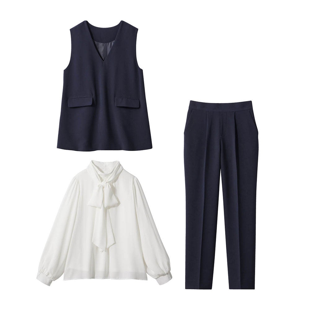 この度、ベルメゾンが40代以上の女性向けにアパレル商品を展開するオリジナルブランド「StyleNote(スタイルノート)」から、「3点セットこなれベストセットアップ」(税込:15,990円、全2色)、「デザインが選べるセットアップ」(税込:7,990円、全4タイプ)、他計6アイテムを展開します。シンプルなデザインと、パターンのこだわりにより楽な着心地で、セレモニーなどのフォーマルな場だけではなく、ビジネスシーンなどの普段使いも可能です。体のラインを拾いすぎない仕様で、サイズは最大5サイズ(Sから3L)まで幅広くご用意しました。自宅で洗濯できるため、クリーニングに出すことは不要で忙しい毎日の時短にも繋がります。