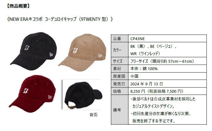 ブリヂストンスポーツ株式会社は、ゴルフを楽しむさまざまな年代・スタイルのゴルファーに向けて、1903年に米国で創業したキャップブランドNEW ERA®とのコラボアイテムを9月13日に発売します。価格は下記商品概要に記載の通りです。