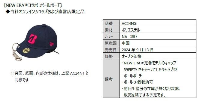 キャップはNEW ERA®の定番9TWENTY型、ボールポーチは59FIFTY型をベースに、正面Bマーク・左サイドにNEW ERA®フラッグロゴをあしらったデザインでラインアップいたしました。