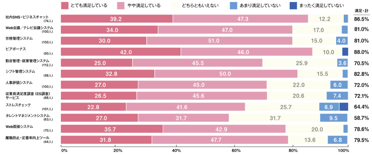 ・その他ツールも70%以上が満足しているものが多かったが、「タレントマネジメントシステム」58.7%、
