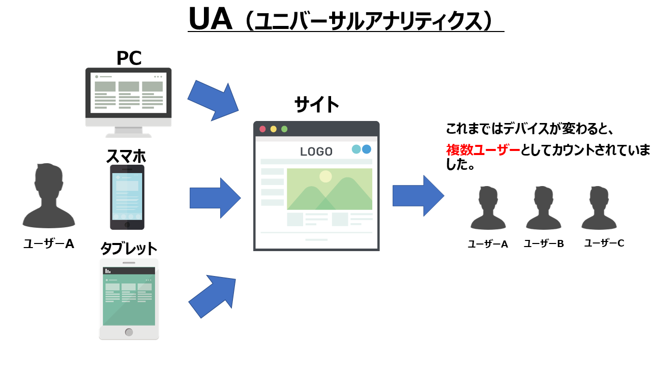 例えばPC・スマホ・タブレットの3種類を使ってアクセスした場合、3人としてカウントされていました。