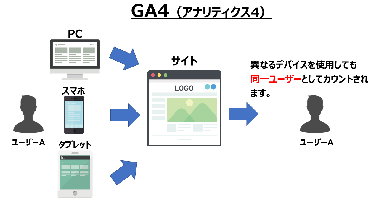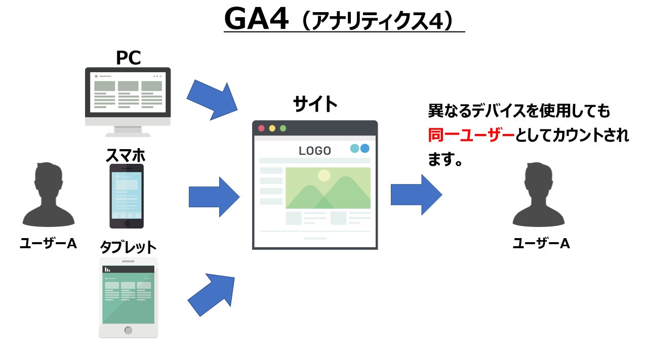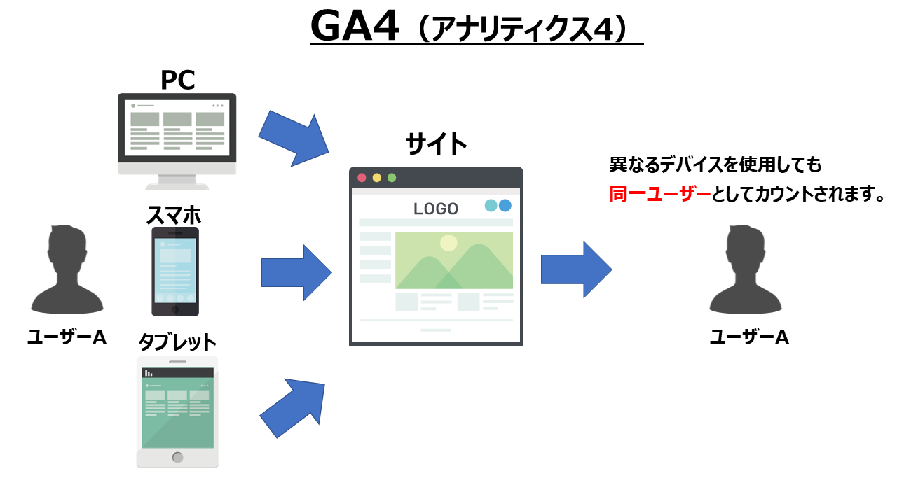 GA4では1人の応募者が複数のデバイスでアクセスをした場合でも同一ユーザーとして認識し、