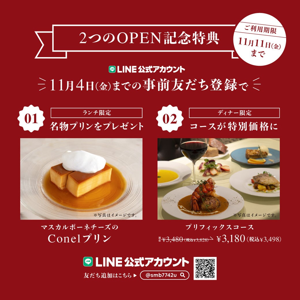 オープン日前日11月4日(金)までのLINE公式アカウント事前友だち登録で上記2つのクーポン配信