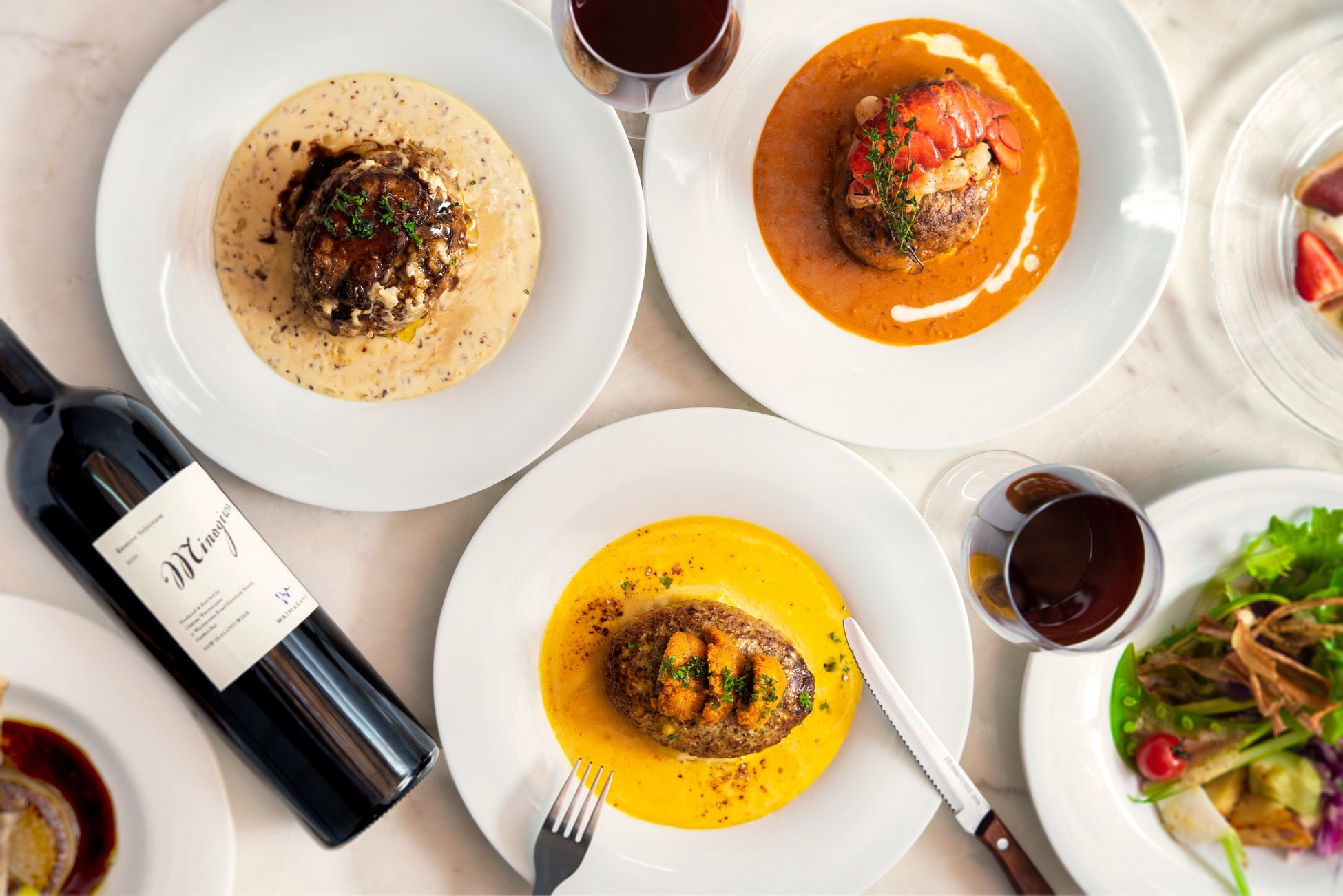 『オマール海老のビスクソース』『雲丹のクリームソース』『フォアグラのクリームマスタードソース』など、Conelだけの全く新しいハンバーグの魅力をお楽しみいただけます。