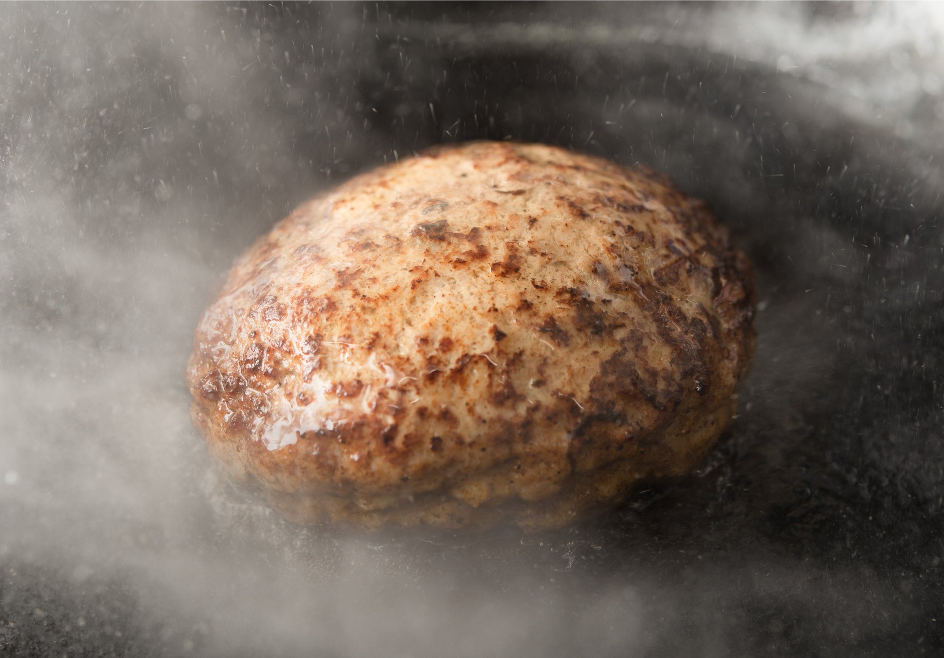 表面をローストした後オーブンでじっくり蒸し焼きにすることで、驚くほどふっくらと、そしてたっぷりの肉汁を含んだ絶品のハンバーグに仕上げます。