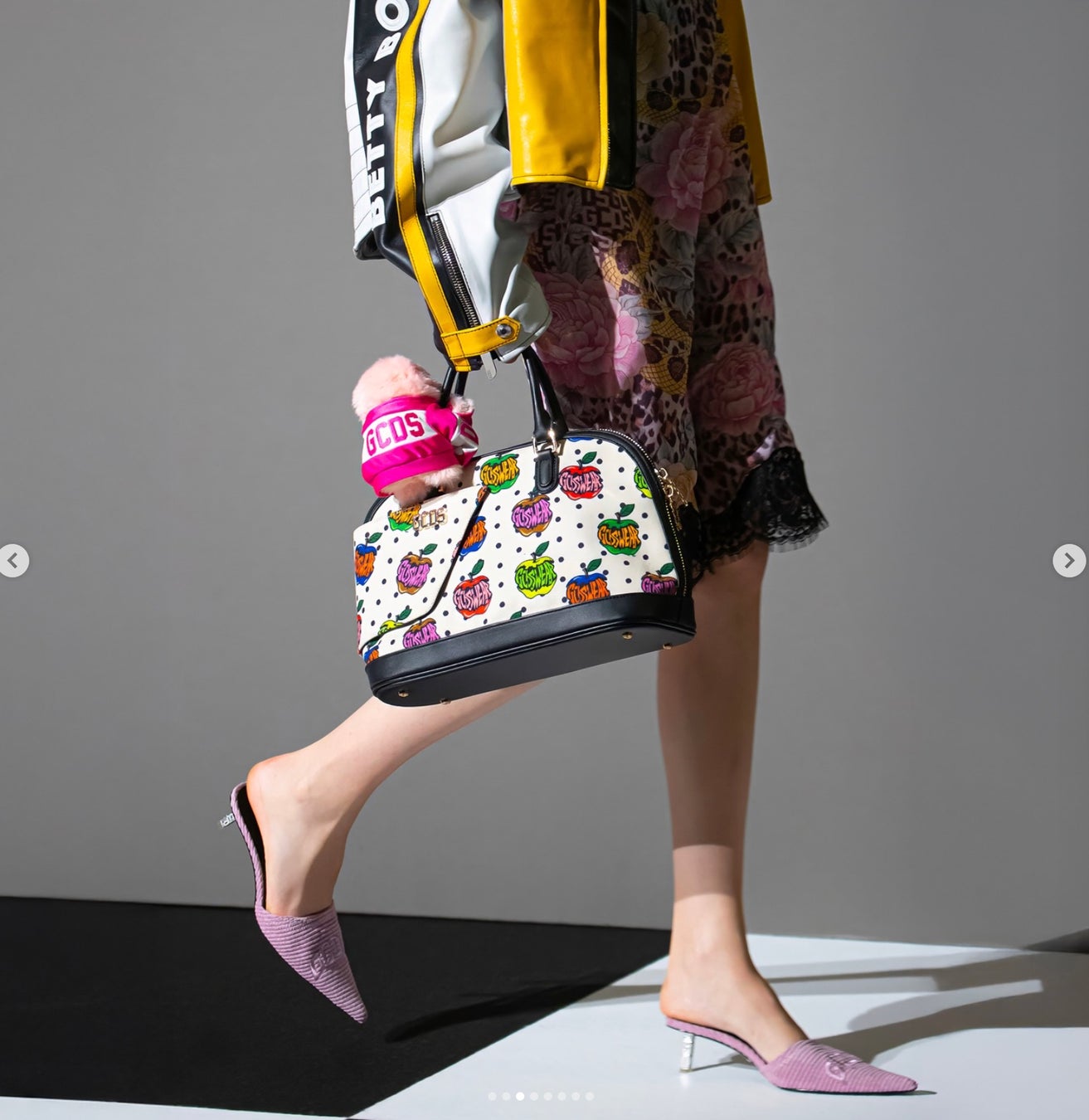 “ちら見”するチャームロボット「mirumi」、イタリアブランド「GCDS」2026年春夏ミラノコレクションにバッグチャームとして登場