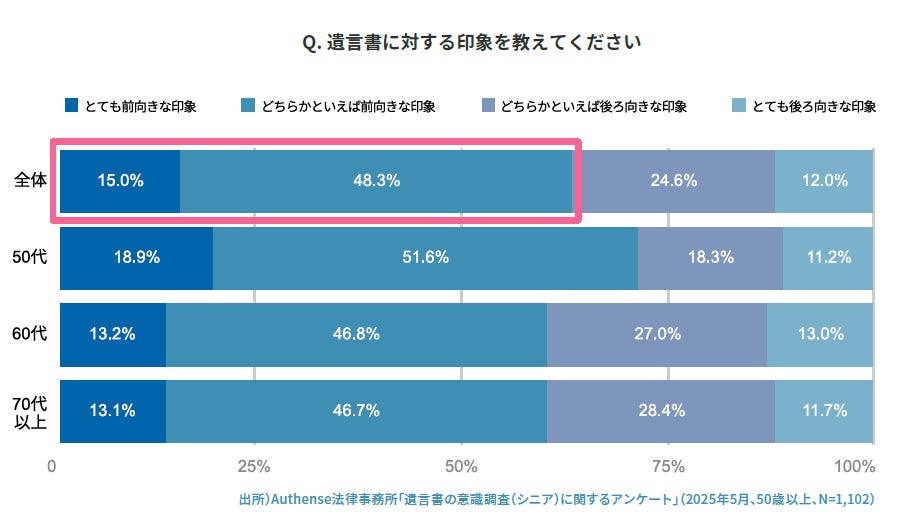 1.遺言書に前向きな印象を持つ人は全体の63.3%