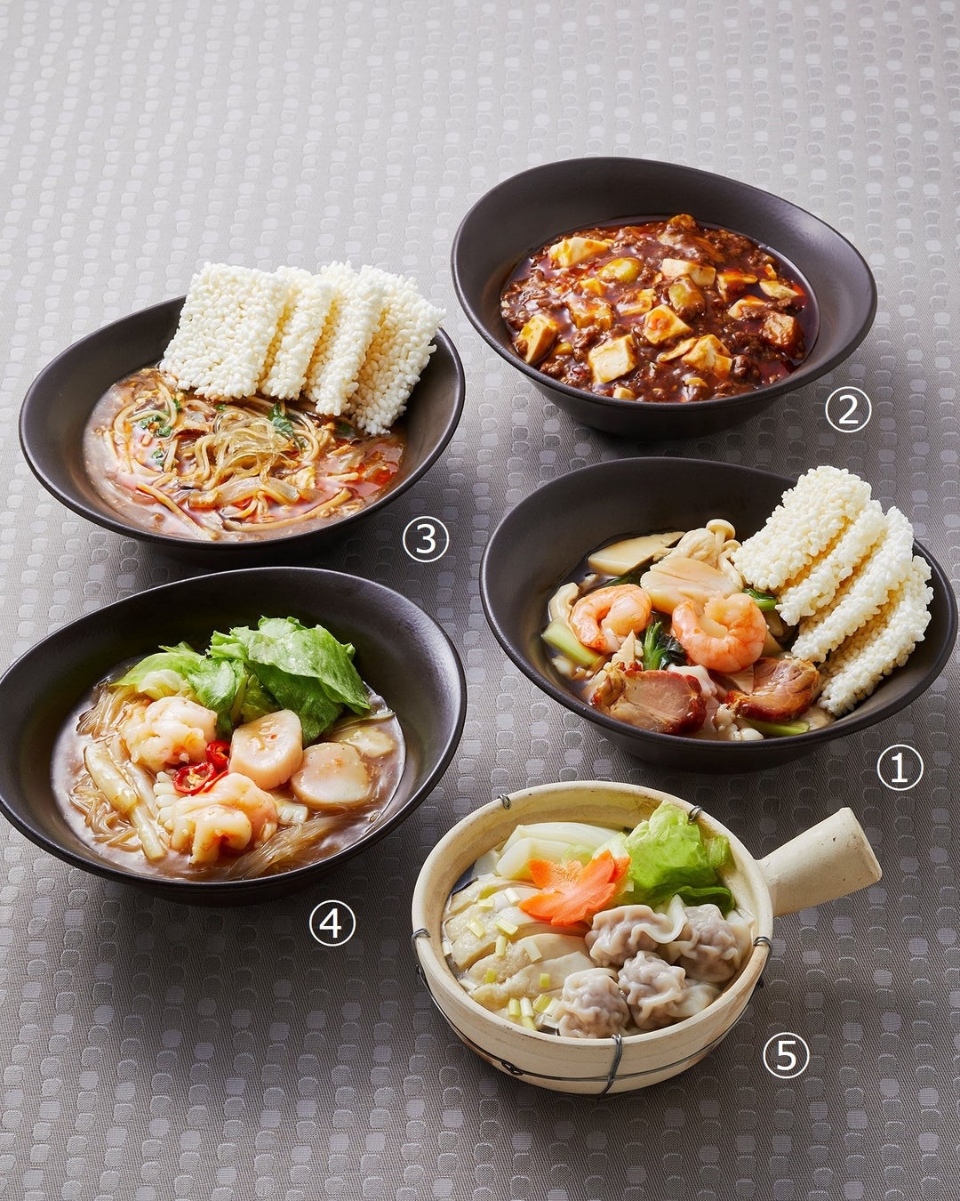 今回は、辛味と黒酢のバランスが絶妙なフカヒレ入りあんかけのおこげや、大海老、帆立貝、烏賊などの海の幸をお楽しみいただけるXO醤煮込みなどが初登場します。
