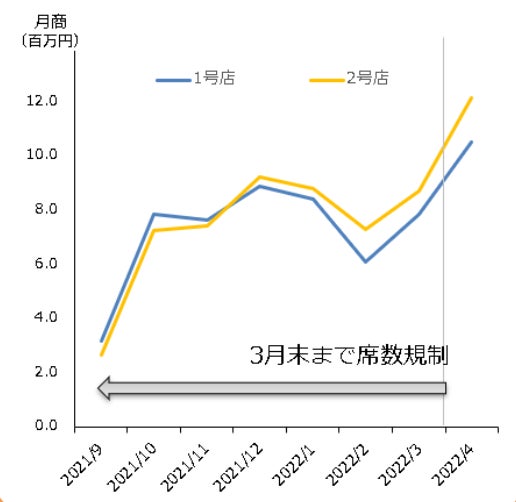 【売上情報】2021年9月の営業休止期間以降、売上は着実に伸長