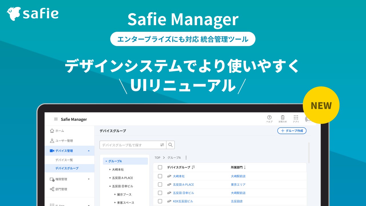 クラウド録画サービスシェアNo.1(※1)のセーフィー株式会社(東京都品川区:代表取締役社長CEO 佐渡島 隆平)は、エンタープライズ向けの管理アプリケーション「Safie Manager(セーフィー マネージャー)」のUI(ユーザーインターフェース)をリニューアルしたことをお知らせいたします。