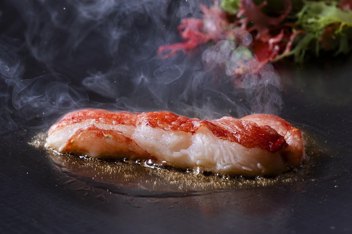 2025年7月18日にリニューアルオープンした「ふかみ」では、目の前の鉄板で焼いたバター風味のタラバガニをアメリケーヌソースでいただく贅沢な一品をご用意。香ばしい香りと濃厚な旨みをご堪能ください。