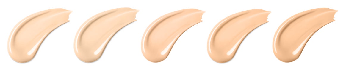 “今回、色補正効果をもたらすため、それぞれのシェードに適量のカラーピグメントを加えています。ライトトーンには、クマを補正するピンクを少し、ミディアムトーンには、影の落ちる部分を明るくするピーチを少し、ダークトーンには、紫クマを和らげるイエローを少し加えました。”