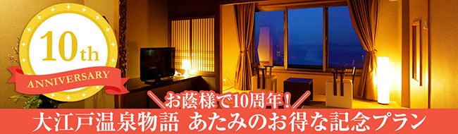 【大江戸温泉物語 熱海温泉 あたみ】が開業10周年 オーシャンビュールーム確約、あわびの踊り焼き&売店利用券付き、記念プラン販売開始
