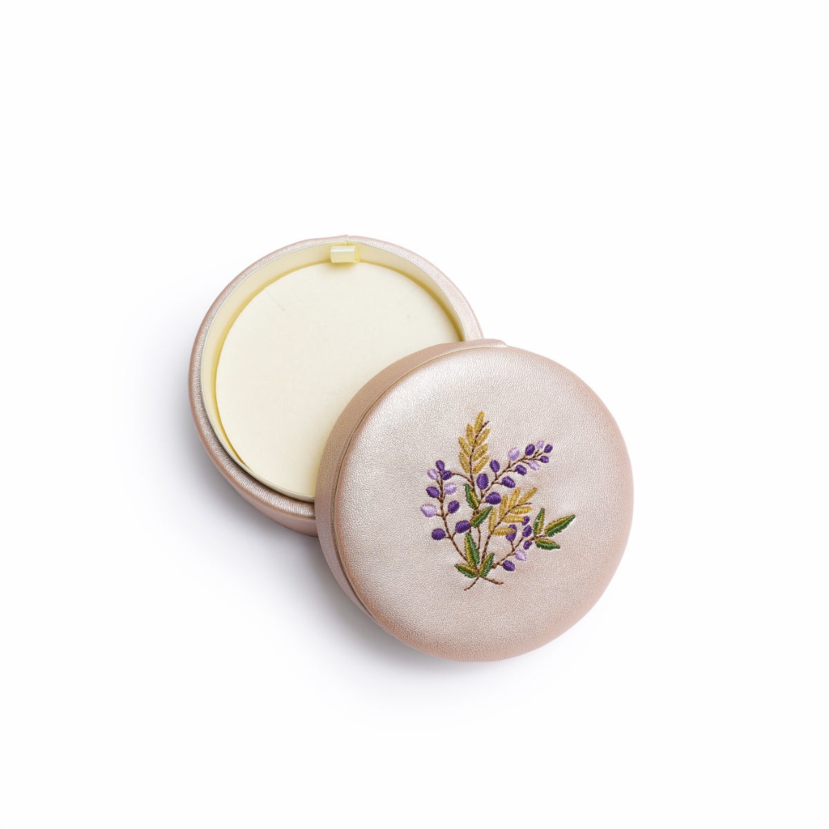 2023 Autumn Collectionのジュエリーは、秋の実りをイメージしたパープルの実や葉の刺繍を施した特別なケースにお包みしてお渡しいたします。