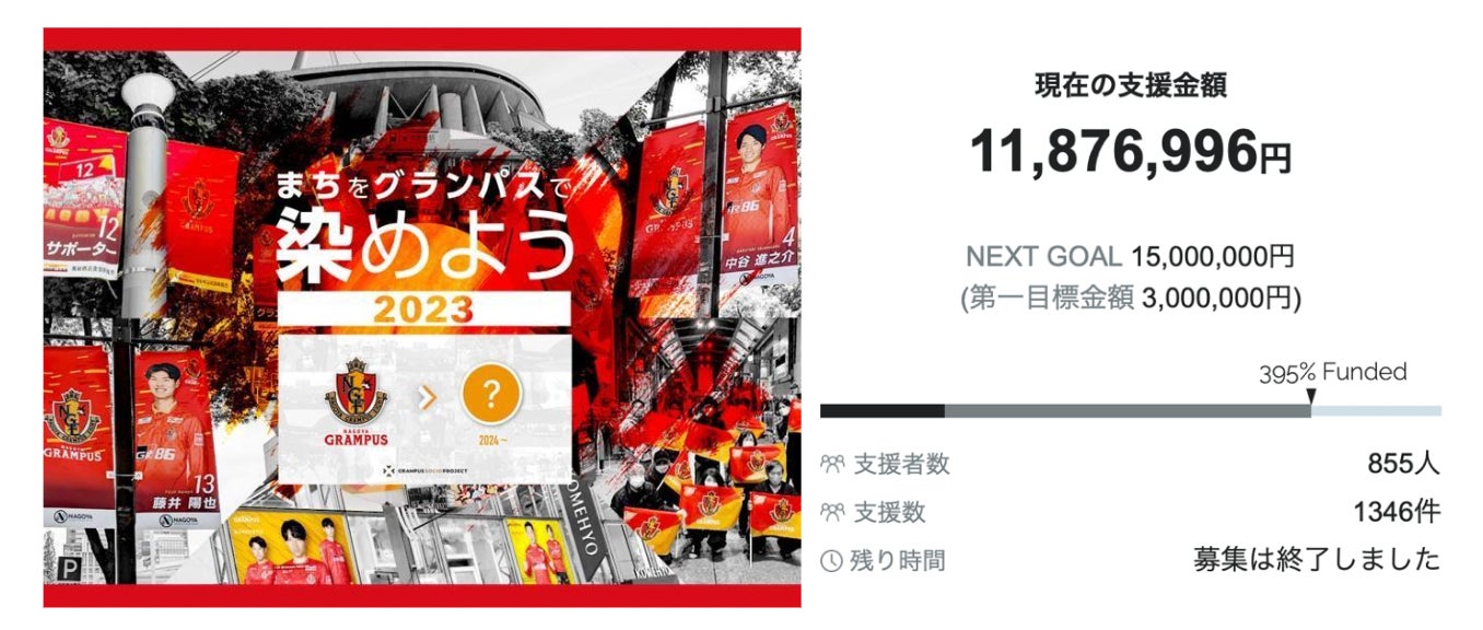 1.目標金額を達成! 〜スタジアムをまちをグランパスで染めよう 2023〜