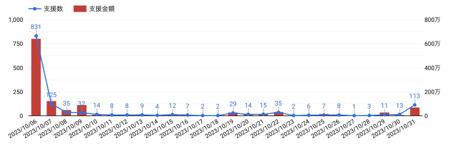 2023年10月6日から10月31日まで実施したプロジェクトは、1,346件もの支援をいただき、第一目標金額である300万円を超え、11,876,996円を集めることができました。支援者の皆様には多大なる温かいご支援を頂き、深く御礼を申し上げます。