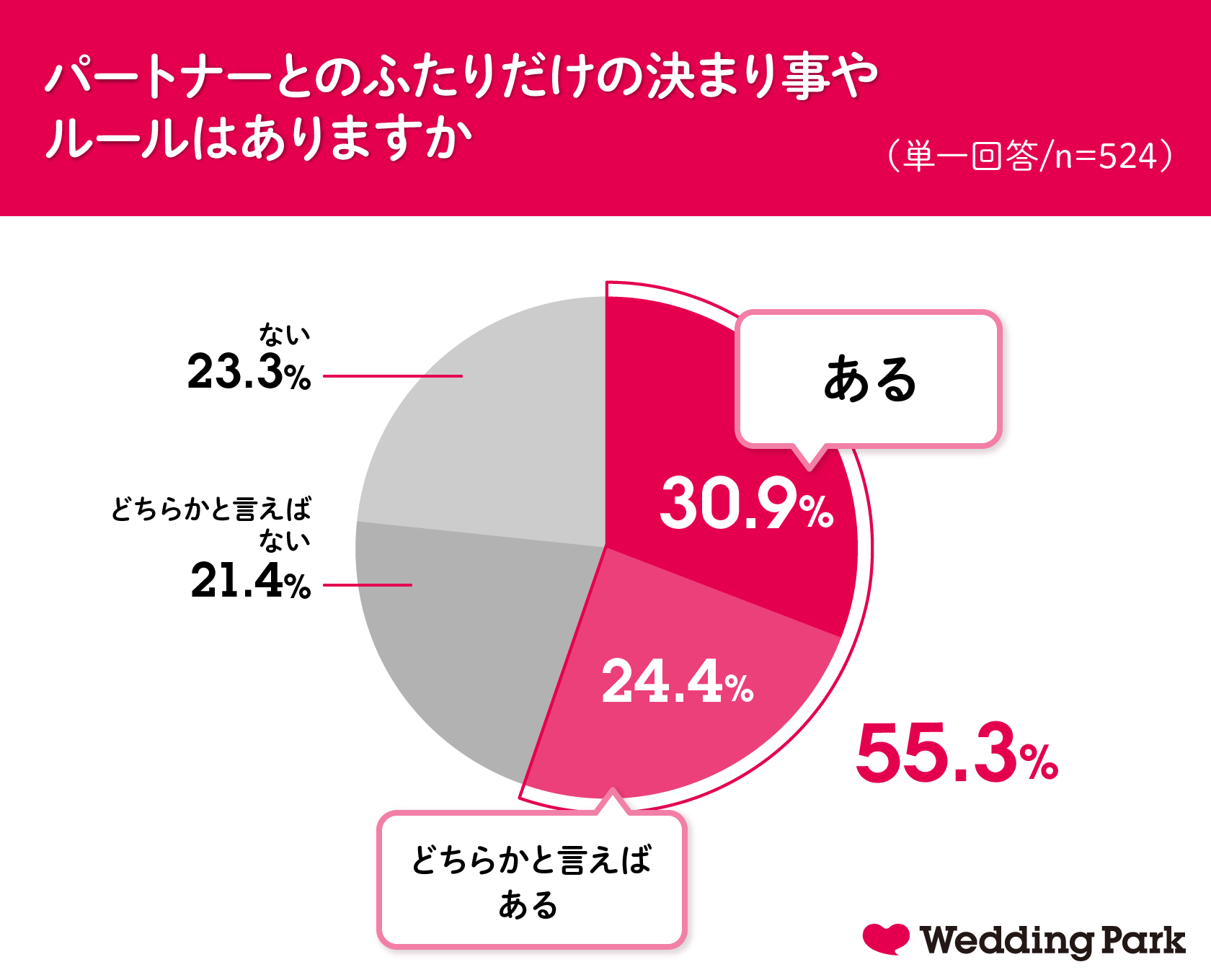 ・ふたりだけのルールや決まり事を作っているカップルは55.3%