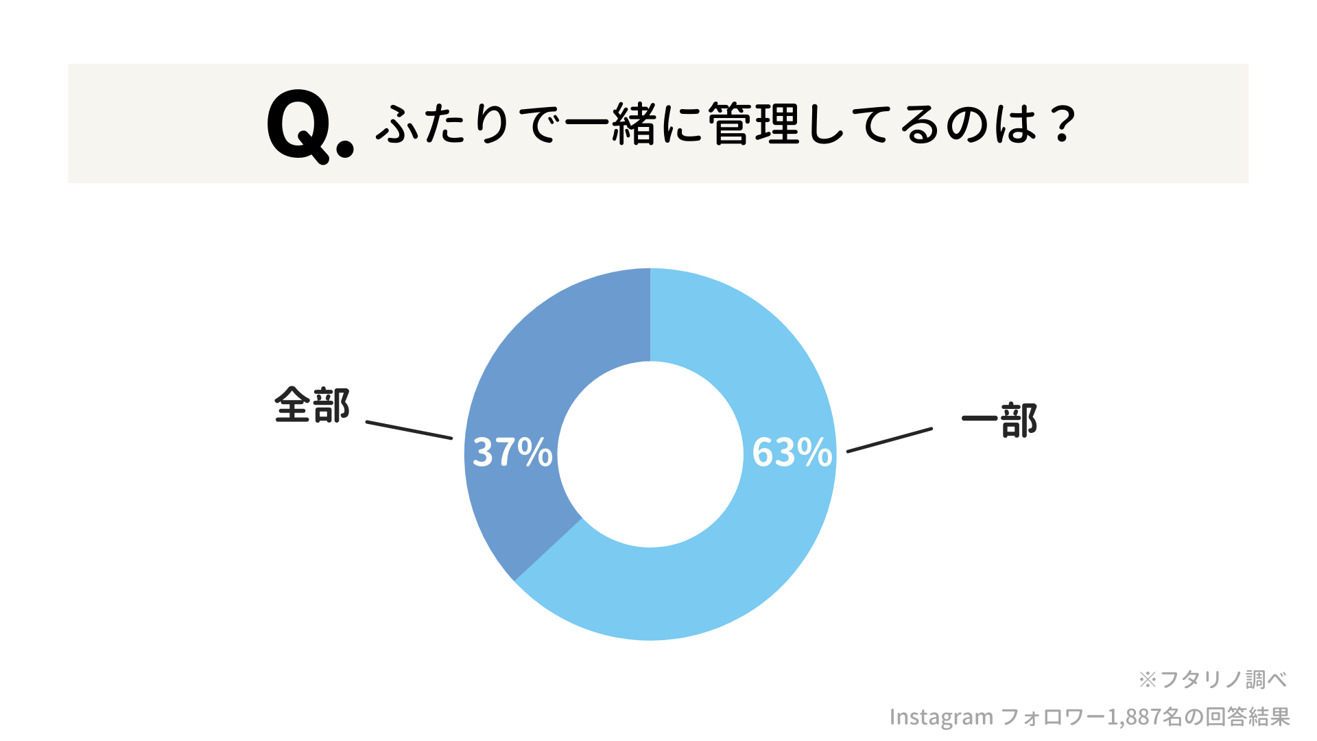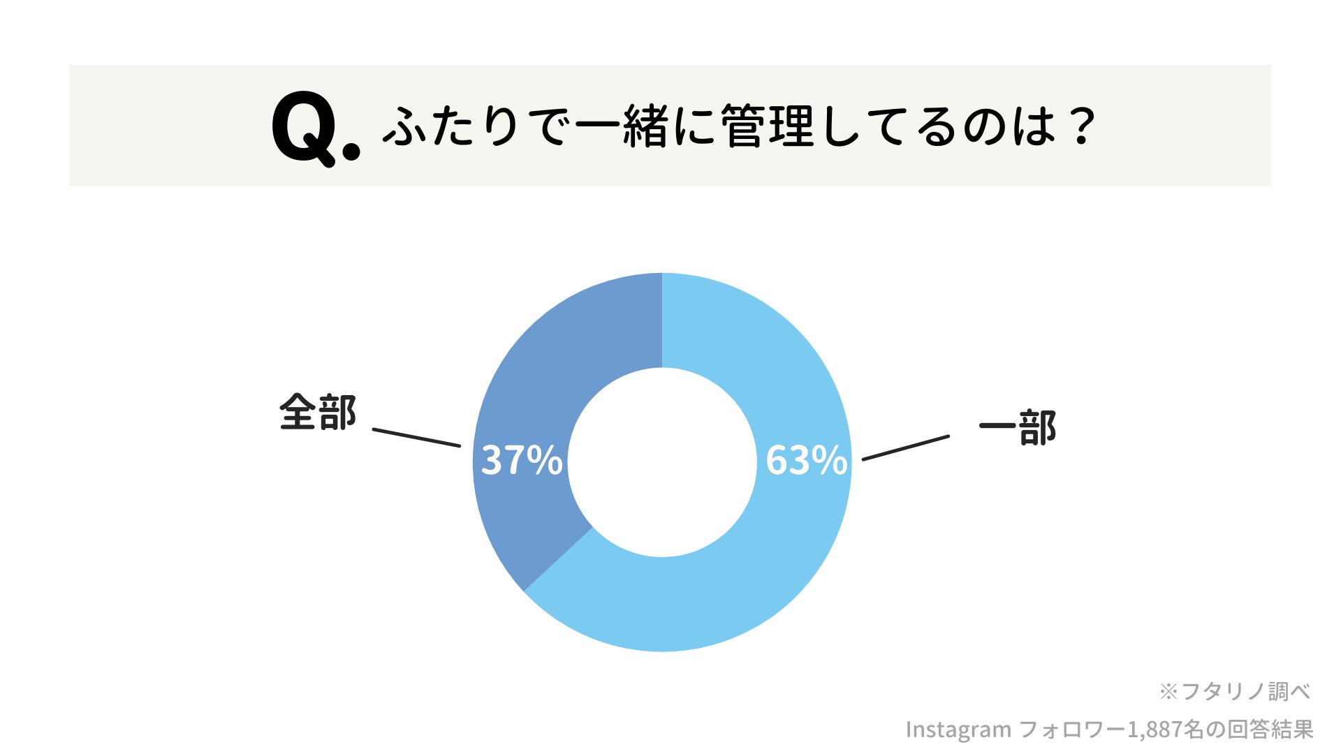 また、ふたりで一緒に管理する家庭には、全ての資産を可視化しているケースと、別々に管理する部分も残しつつ一部を共同管理するケースの2つがあり、割合としては後者が主流となっています。