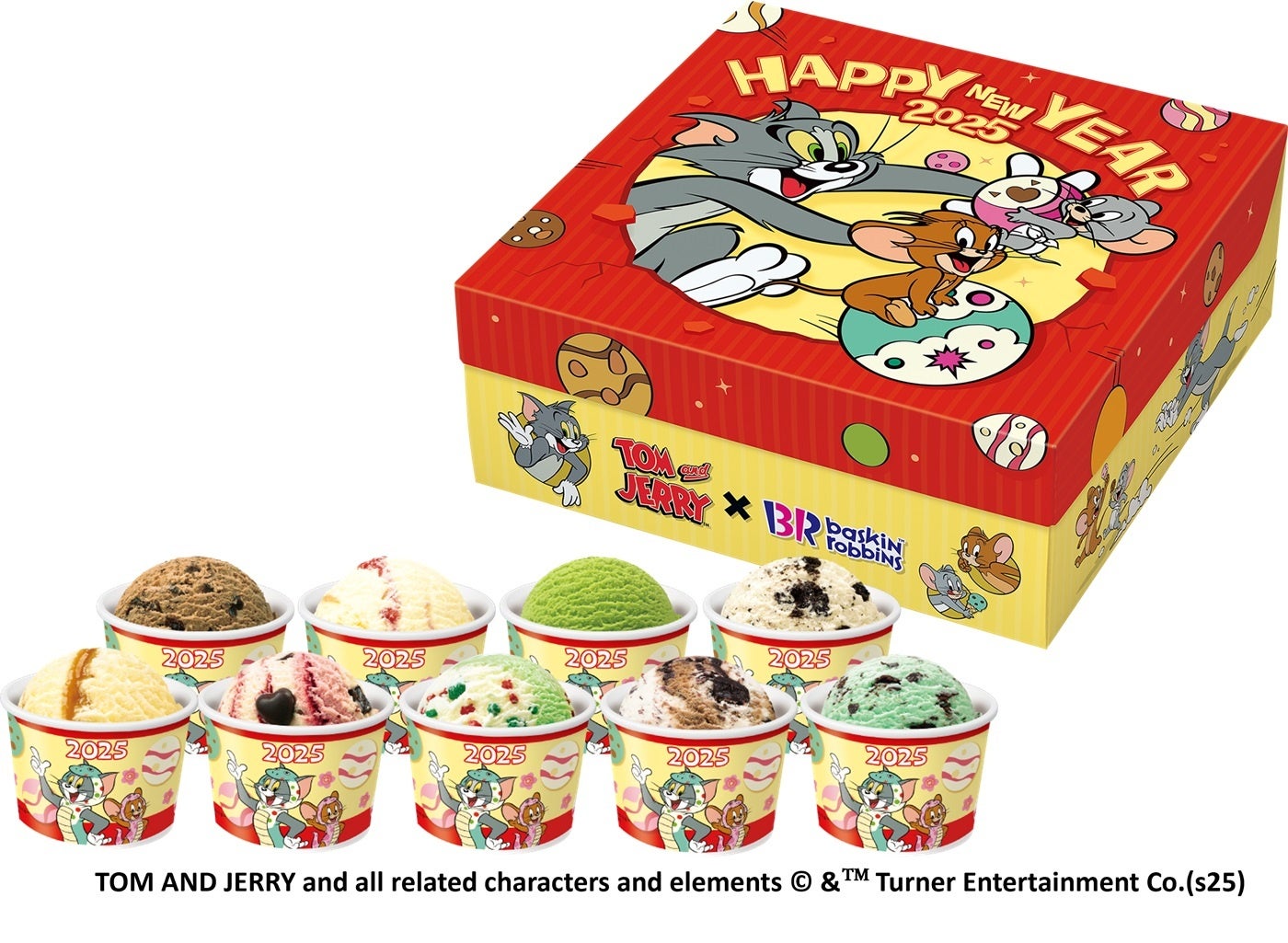 B‐R サーティワン アイスクリーム株式会社(所在:東京都品川区上大崎3-1-1/代表取締役会長兼社長 CEO ジョン・キム:東京証券取引所(スタンダード市場):2268)は、 ワーナーブラザース・ディスカバリー グローバル・コンシューマープロダクツとのパートナーシップのもと、「トムとジェリー」と初コラボレーションした「お正月スペシャルセット トムとジェリー」を2025年1月1日(水・元日)より、 「お正月ハッピーフレンズ トムとジェリー」を2024年12月27日(金)よりそれぞれ、2025年1月9日(木)までの期間限定で販売します。 2025年に85周年を迎える、世界中で幅広い世代に愛されるアニメ「トムとジェリー」が、サーティワンに初登場します!いつも元気で、ドタバタ追いかけっこをしているトムとジェリーをデザインした、思わず笑顔になっちゃう限定商品をラインナップしました。年末年始は、トムとジェリーといっしょに、わいわい楽しく過ごしてね♪