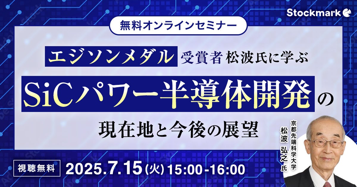 【7月15日(火) 無料セミナー】『エジソンメダル受賞者 松波氏に学ぶSiCパワー半導体開発の現在地と今後の展望』を開催(ストックマーク主催)