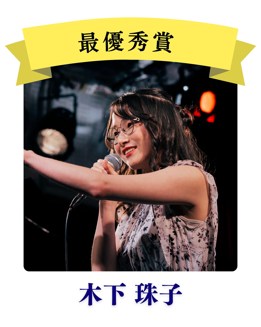 2回目の挑戦としてこの舞台に立ち歌わせていただけたこと、このような評価をしていただけたことに感謝しています。私はシンガーソングライターとしてSNS等でも活動しているので、今後も応援してくださると嬉しいです。この度は、本当にありがとうございました。