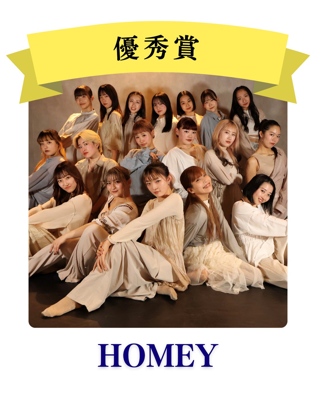 私たちに素敵な賞をくださった審査員の皆様、そしてパフォーマンスを見てくださった皆様、本当にありがとうございます。私たちは、まだまだ夢に向かって踊り続けている存在ですが、いつか様々な方に夢を与えるチームになりたいと思っています。またどこかで、皆様にパフォーマンスを見てもらえるように頑張っていきたいと思います。