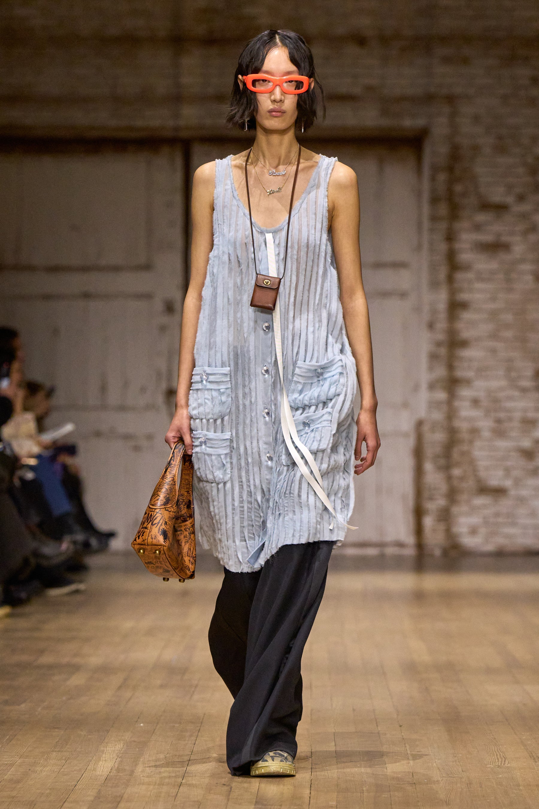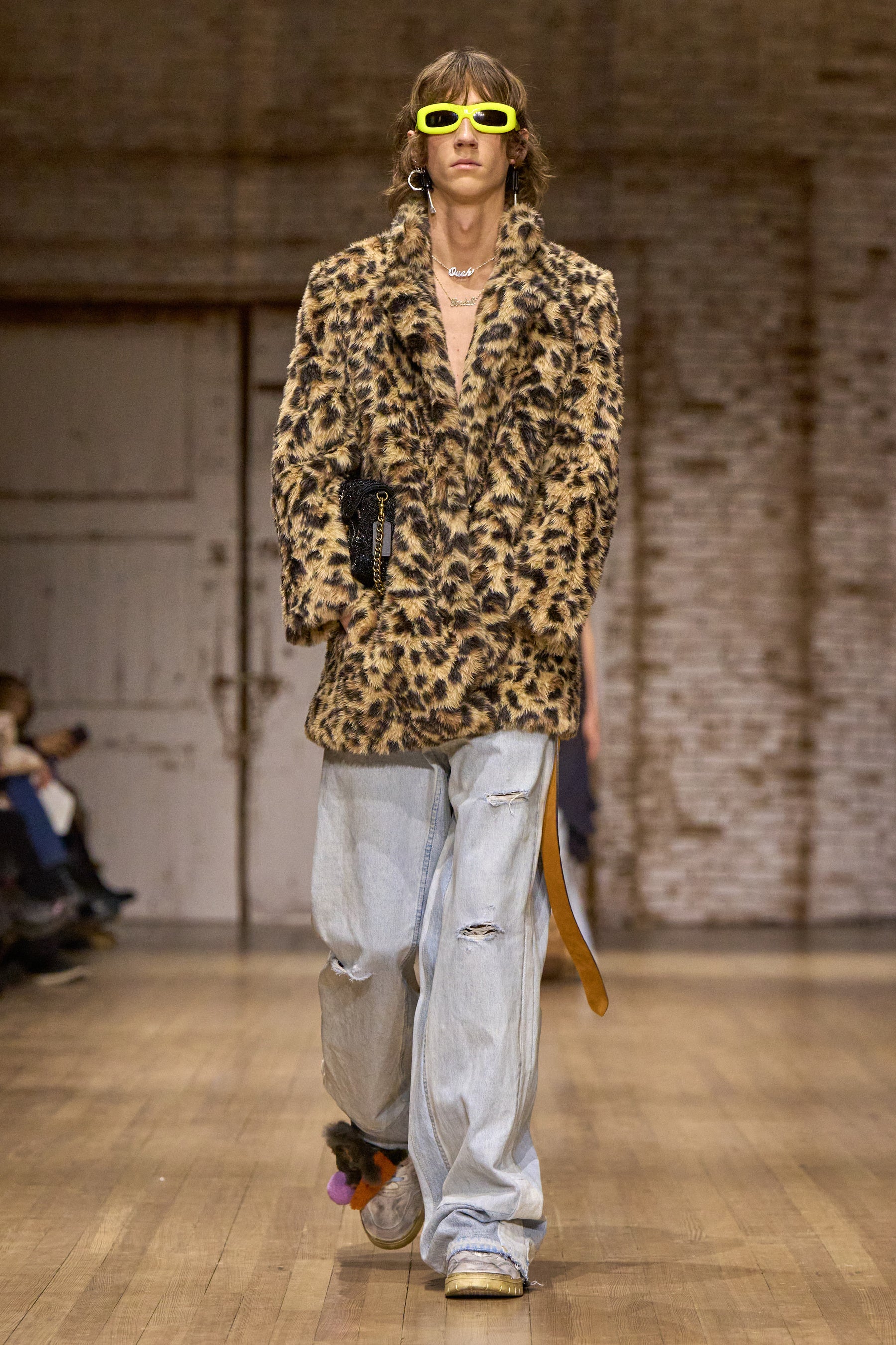 アウターウェアは、クロップドや短い丈のボンバージャケット (再利用された素材で仕立てられたものも含む)、シアリングやレザーを使ったマキシ丈のトレンチコート、ダッフルコート、ピーコート、エコファーのレオパード柄コートなどが登場。また、アーガイル柄やラメ入りのニットも豊富に揃い、ブレザーやクロップド丈のベストにはテーラリング要素が取り入れられています。1920年代のリラックスしたデイドレスに着想を得たコレクションには、シフトスタイル、タンクスタイル、ドロッププリーツスタイルのドレスのほか、ヴィンテージのネグリジェやビーズガウンから作られたドレスも含まれています。より快適で心地よさを醸し出すアイテムは、ウォッシュド加工が施され、長い間愛用した様な風合いを湛えるTシャツ、スウェットシャツ、そしてフーディ。また子供のころに履いていた様なスリッパを彷彿とさせる、"ふわもこ" なデザインのシューズが挙げられます。いずれのルックも、スケートカルチャーにインスパイアされたウルトラバギーパンツを合わせ、カジュアルでありながらもエレガントさを演出。ショーに登場したジーンズはすべて、セカンドハンドのデニムを再利用して作られたものですが、これはコーチがサステナビリティの観点を追求し、進化し続けていることを象徴する素材です。