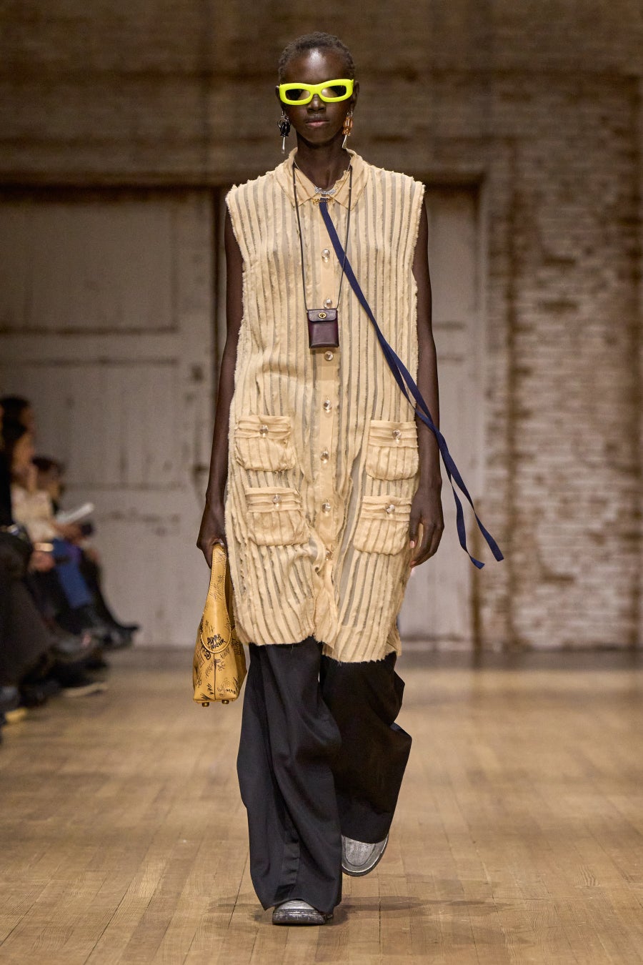 2シーズン目となる "Soho Sneaker (ソーホースニーカー)" は、ラブドレザー、シルバースエード、レオパードプリントなど、新しい仕上げでランウェイを飾りました。自分らしさを表現するためのキャンバスとして考案されたこのスニーカーは、擦り傷や色の選択、カスタマイズの一つひとつが、履く人の個性を輝かせるようデザインされており、ポンポンや宝石をあしらったリボン、小さなシアリングのぬいぐるみなど、愛情を込めて手作業で作られた個性あふれるチャームが添えられています。さらに、同じように遊び心にあふれたぬいぐるみのスリッパや、ブロックヒールのローファー、バックルブーツ、キトンヒールのサンダルが登場。最後にルックを仕上げたのは、ドライバーやウィングナットをかたどった可愛らしいツールボックス風ジュエリーや、名前の入ったネームプレートネックレス、色鮮やかなステートメント サングラスといったアクセサリーでした。