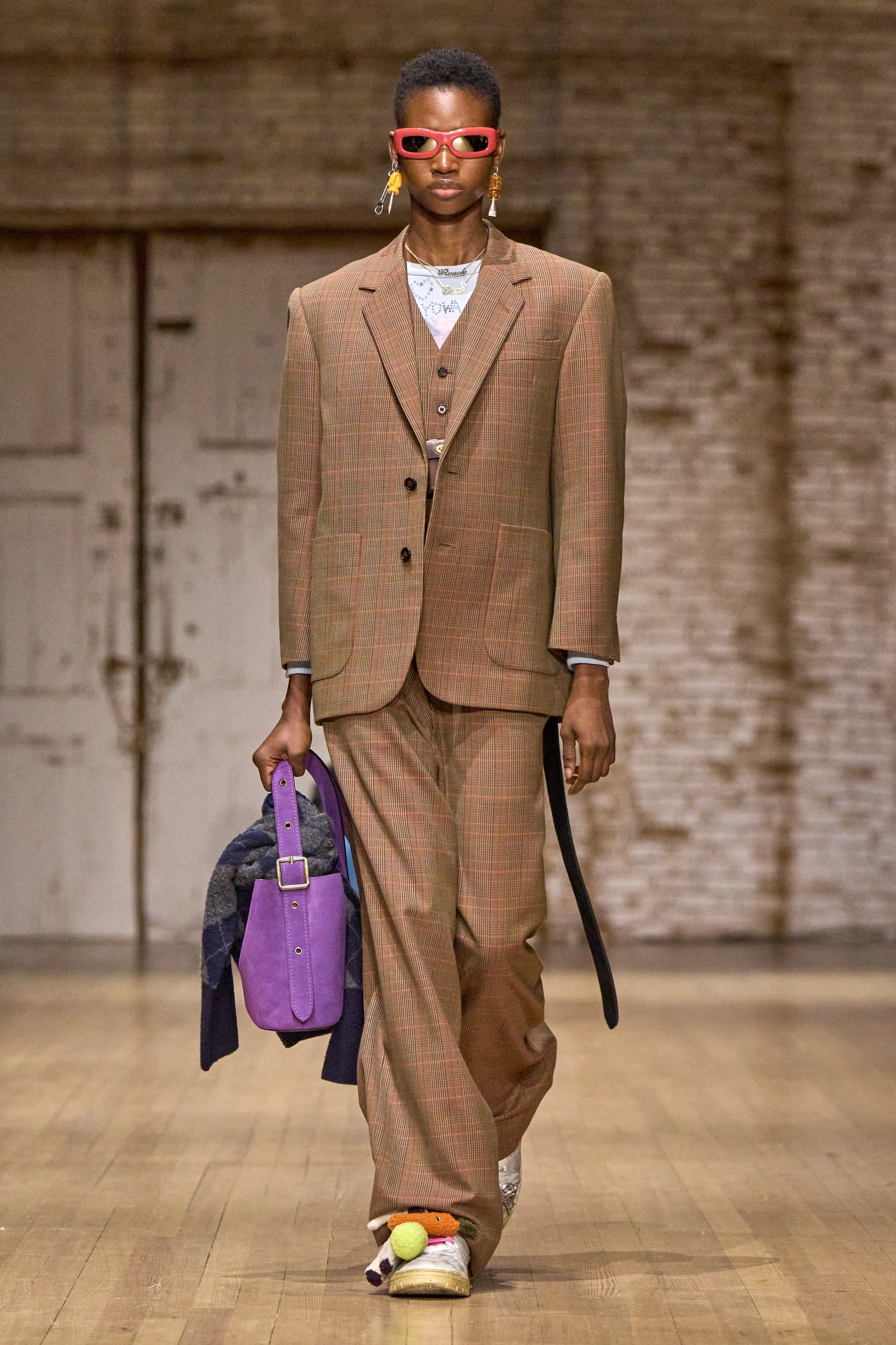 ヴィヴァースは次のように述べています。「私のFallのビジョンは、コーチをファッションハウスとして確立させるすべてのもの - 例えば私たちのヘリテージを物語る素材やカラーパレットや、クラフトマンシップを通じてセカンドハンドの服を再利用し、"改めて魅力に気づく" ようにすることへのコミットメント、そしてコミュニティと自分らしさの表現が持つ力に対する信念をコレクションの根底に据えることでした。ここには、素材、シルエット、スタイリングのすべてにおいて、明確で統一感のある考え方がありますが、それは自分たちが何者であるのか、何を信条としているのかをしっかりと理解しているからこそ生まれたものです。」