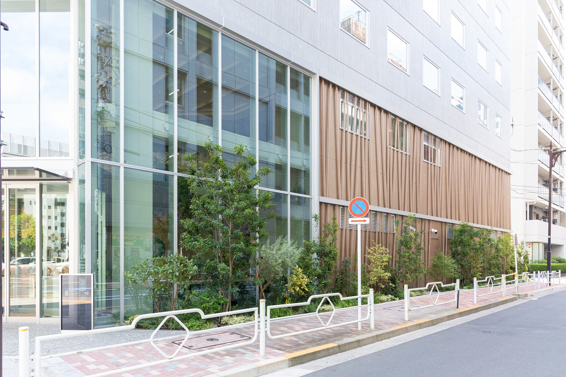 また、外構にも多彩な植栽を設置し、街路樹からのつながりを保ちつつ、様々な人々が行き交う築地、銀座の街に合わせた豊かなグリーンを専門のスタッフがこだわって選びデザインしました。