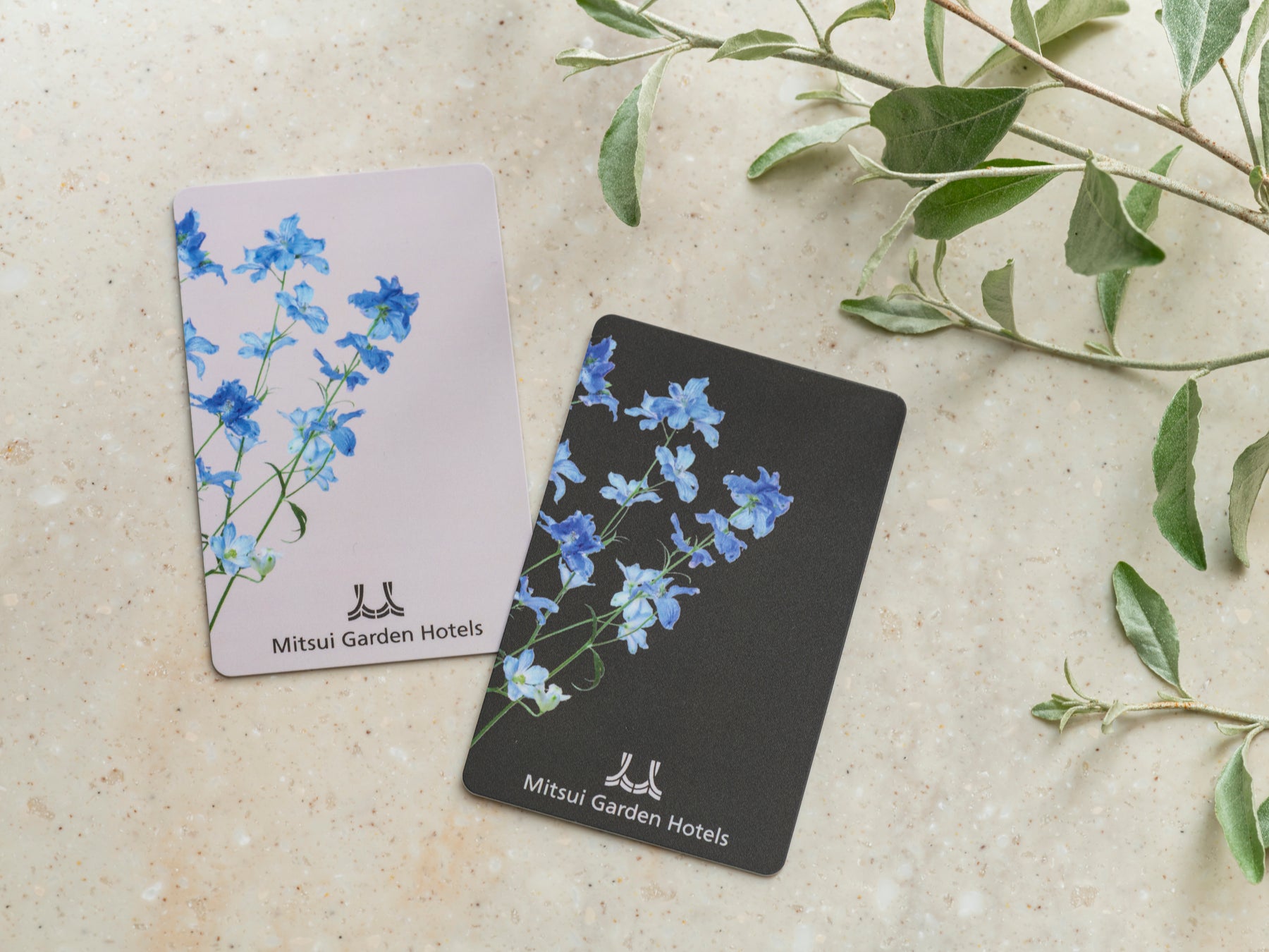 客室用のカードキーは、三井ガーデンホテルズのブランドタグライン「Stay in the Garden」のキービジュアルにも使われている花‟デルフィニウム“をあしらい華やかなデザインに。