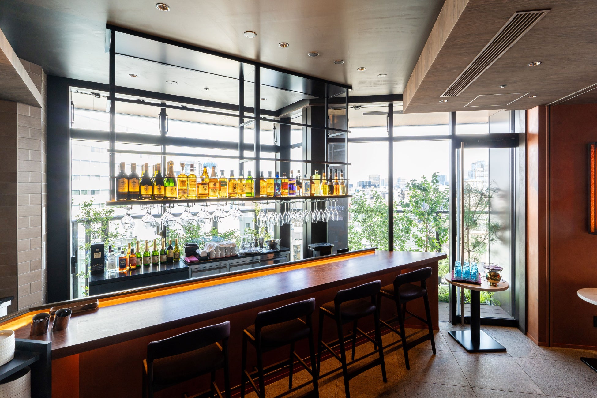 窓から見える東京の街並みと植栽のコントラストが相まって、ゆっくりと食事を楽しめる空間になっています。