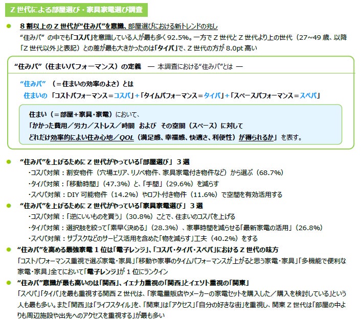 〜Z世代の部屋選び・家具家電選びの新基準は“住みパ”8割超のZ世代が“住まいの効率化”を重要視、費用や時間を厳しくチェック〜
