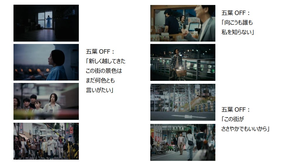 今回は、(前回の「コンビニ」篇に続いて、)石橋静河さんが主人公の五葉(いつは)役として登場。彼女が最近引っ越してきた場所は、実は「家族ポイント」CMシリーズでおなじみの“南波家”が住む街だったという設定の下、物語は見知らぬ場所で見知らぬ人たちと触れ合いながら、少しずつ街になじんでいく五葉の目線で描かれます。