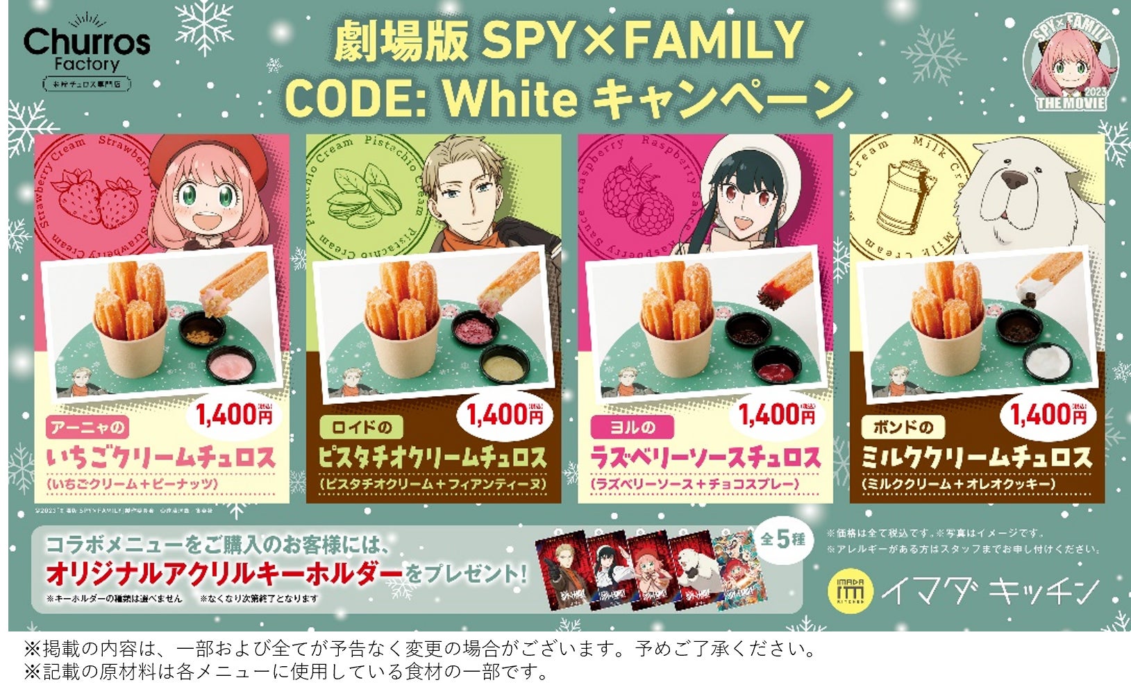 IMADA KITCHEN店舗も劇場版 SPY×FAMILY CODE: Whiteの世界観に合わせSPY×FAMILY一色に装飾いたします。映画の世界に浸りながら、こだわりのチュロスをお楽しみください。