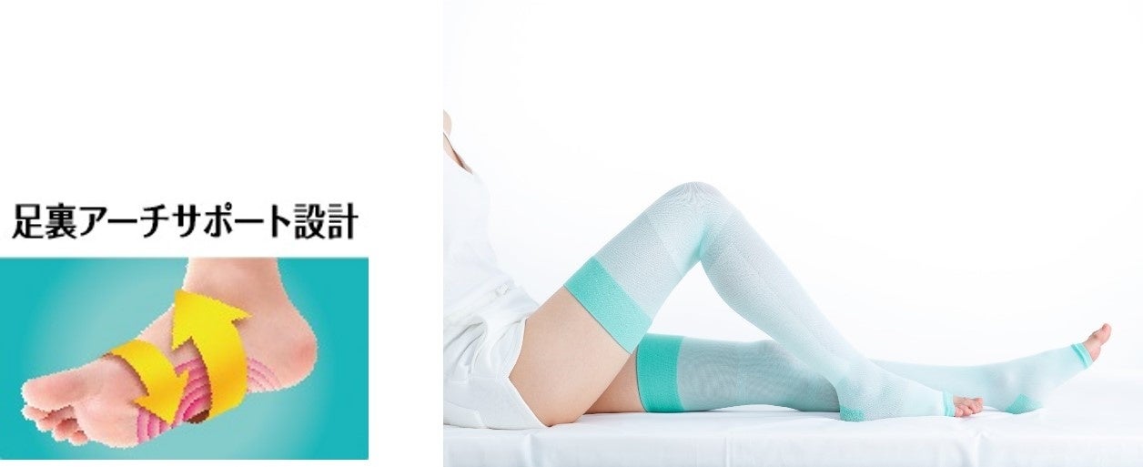 足首から上へいくほど圧力が低くなる設計で、脚を軽やかに美しく整えます。