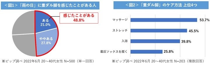 ピップ株式会社(本社:大阪市中央区、代表取締役社長:松浦由治)の着圧レッグウェアブランド「スリムウォーク」は、20~40代の女性500名を対象に「雨の日の重ダル脚」に関する実態調査を行いました。
