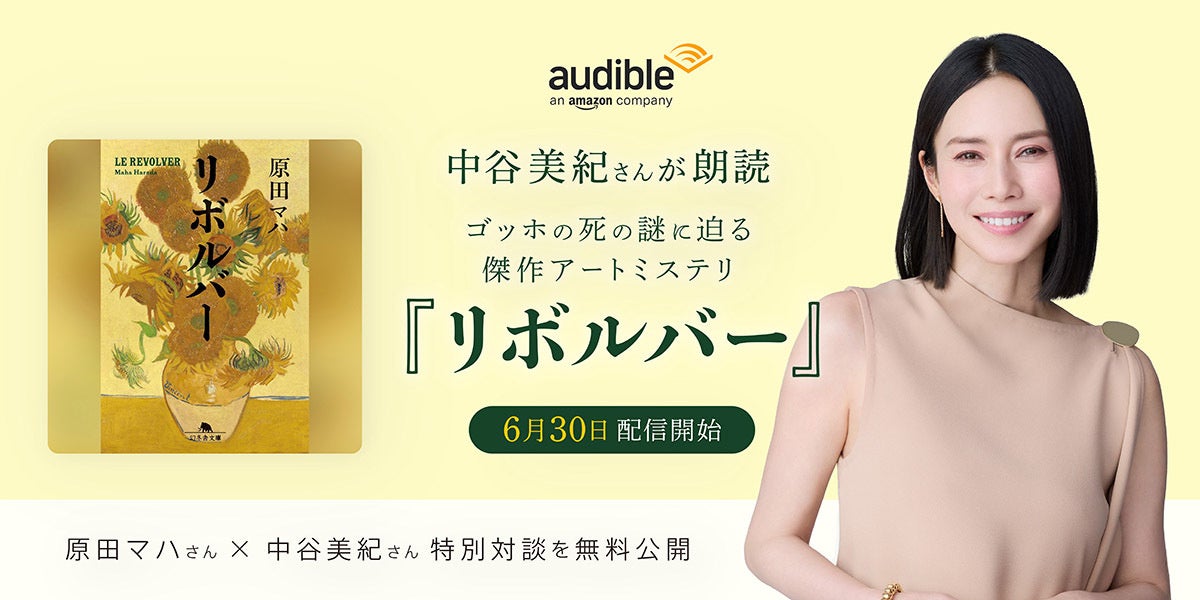 世界最大級のオーディオブックおよび音声コンテンツ制作・配信サービスであるAmazonオーディブル(以下、Audible)は、6月30日より、原田マハさん著『リボルバー』を中谷美紀さんの朗読で配信開始予定です。