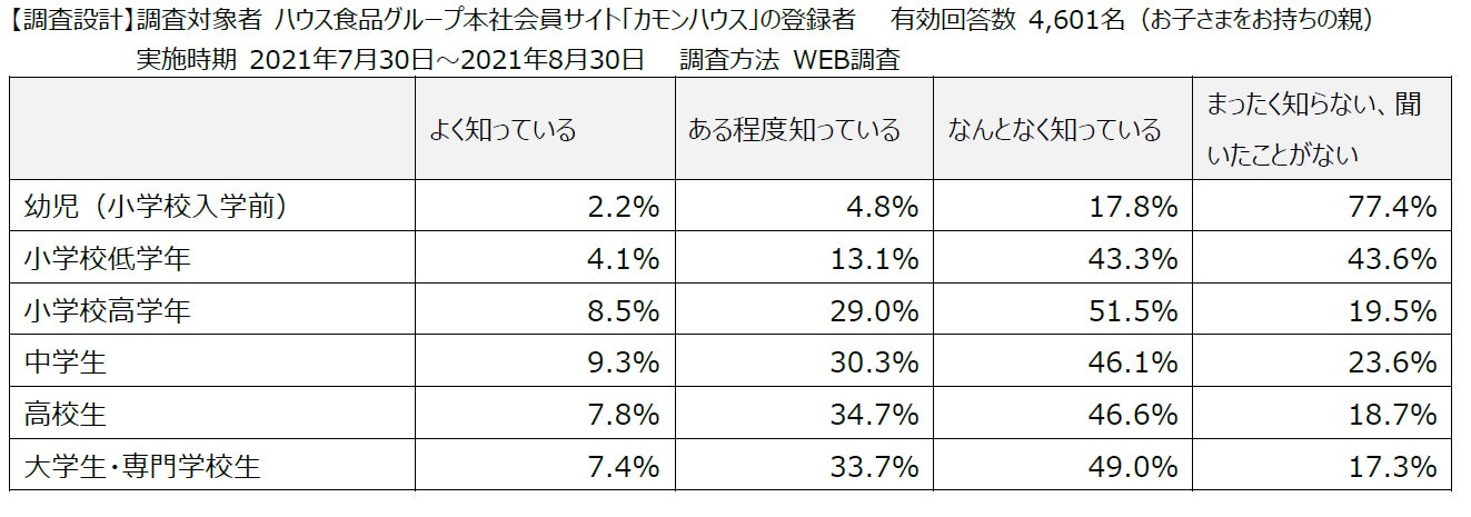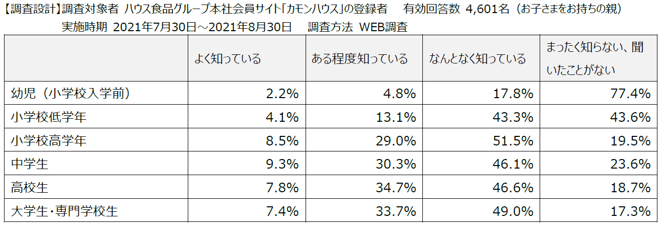昨今環境への意識が社会的に高まり、小学校のカリキュラムでも地球環境問題が取り扱われるようになりました。この意識変化を受けて、カモンハウスでは「お子さまのSDGs認知度」に関するアンケートを実施。小学校高学年以上でSDGsへの認知度(「よく知っている」、「ある程度知っている」の合計)が高まる傾向にありましたが、幼児(小学校入学前)で7.0%、小学校低学年では17.2%と低いことがわかりました。一方、ベネッセの調査では、お子さまと一緒に「環境問題」などについて学んだり会話したいと思う方が66.6%にのぼっています。両社の調査結果から、幼児や小学校低学年など初期学習において、環境という難解なテーマについて、わかりやすくかつ取り組みやすくする必要があると考え、ハウス食品グループの事業である「食」をテーマに、ベネッセ「こどもちゃれんじ」のノウハウを活用したコンテンツを展開することにいたしました。身近なこと、当たり前のことなどふだんの生活でもエコにチャレンジできること、特に“食卓から未来を変えられる”ということを本プロジェクトを通じて、お子さまだけでなく、ご家族みんなで感じていただきたいと考えています。