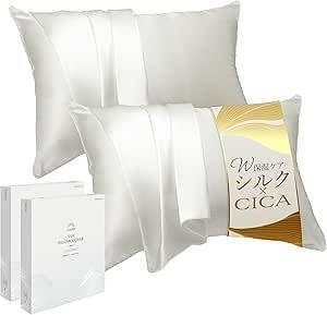 美髪&美肌を叶える贅沢仕様のピローケース。表面には最高級ランク“6Aグレード”の天然シルク100%を採用し、繊維が極めて細かく滑らかなため、髪のパサつきや肌の摩擦ダメージを抑え、翌朝はしっとりとまとまるツヤ髪と、うるおいを保ったなめらかな肌へと導きます。25匁という高密度シルクは一般的なシルクの約2倍の繊維密度で、毛羽立ちにくく長く光沢と風合いをキープ。また、乾燥・ムレに悩む一年中の快眠に配慮し、保湿効果に優れたシルクに加え、話題のCICA(ツボクサエキス)を配合しています。