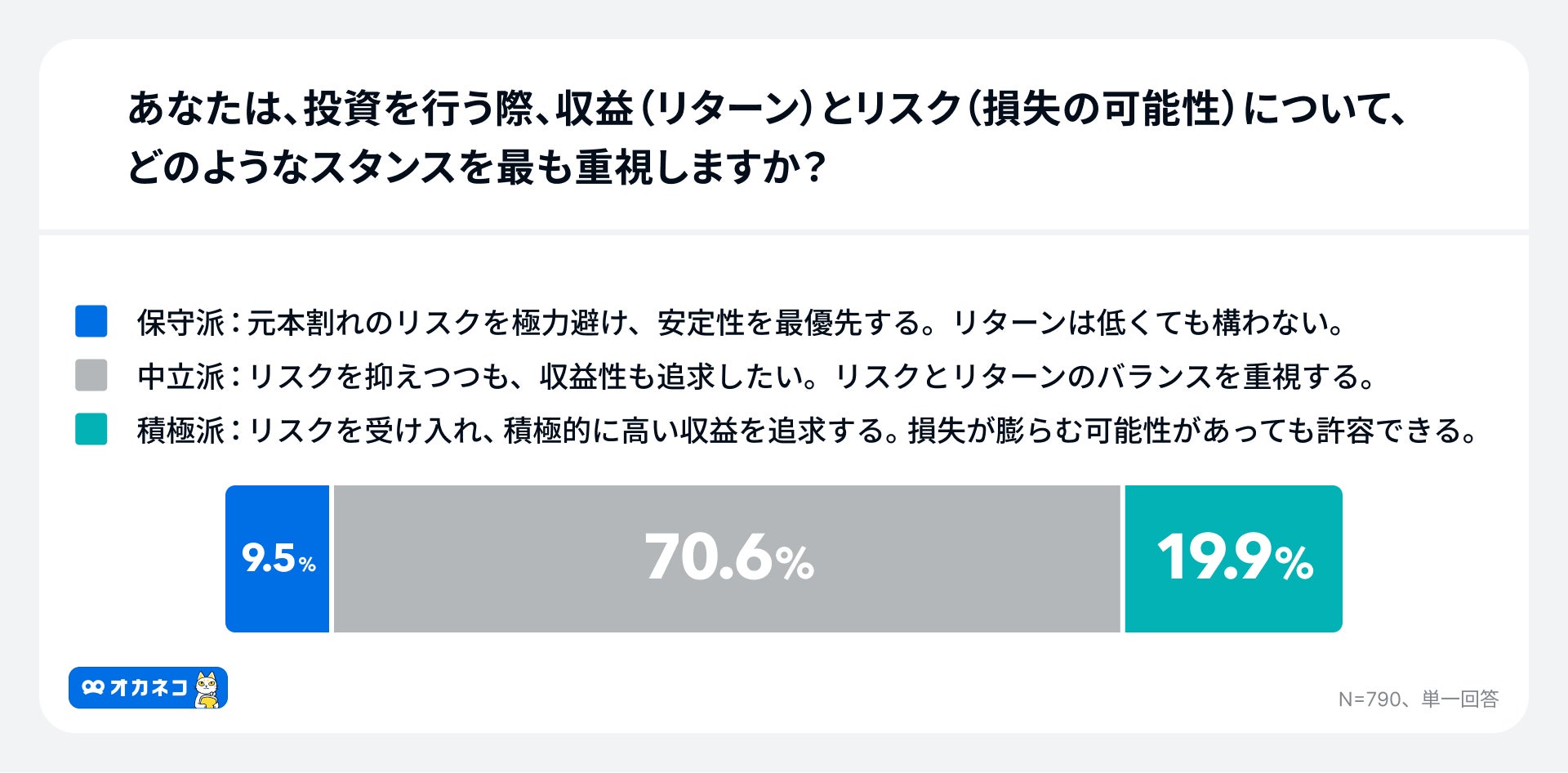 投資スタンスは「中立派」7割で多数 、今後リスクを取る意向の「積極派予備軍」は4割