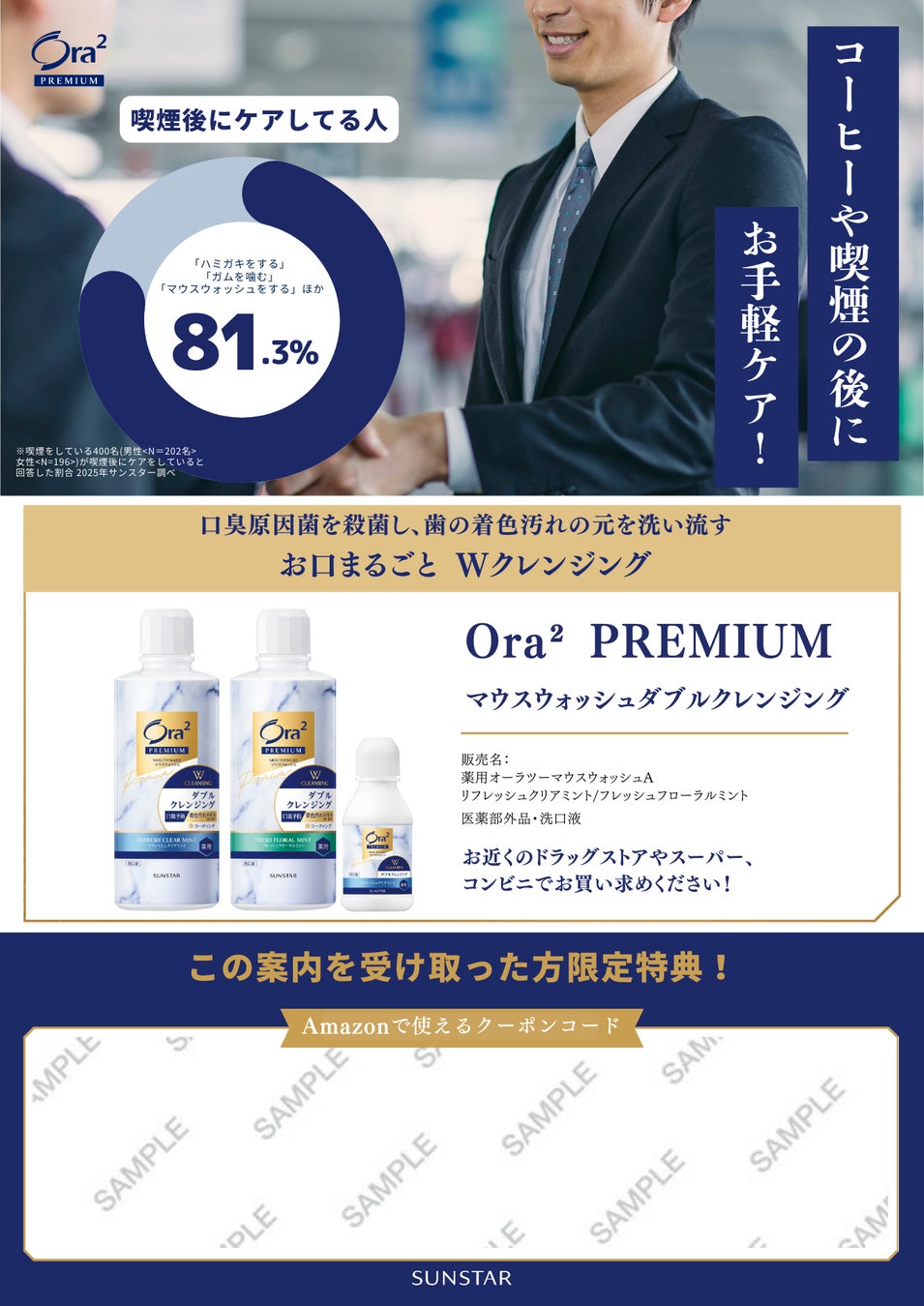 都市で働く人々の間で、第一印象やマナーへの意識が高まる中、“口元のケア”は現代のエチケットとして定着しつつあります。とくに仕事の合間や外出先で手軽に使えるマウスウォッシュは、仕事中にコーヒーを摂取し、「口臭」や「着色汚れ」が気になるビジネスパーソンにとっての強い味方です。今回の取り組みは、そんな”すきま時間”を活かし、「Ora² PREMIUM」のもつクオリティと機能性を、リアルに体感できる設計となっています。BREAKが提供するデジタルサイネージの映像・音声による訴求と、リアル空間でのサンプリングを組み合わせることで、印象と記憶に残るプロモーションを実現します。