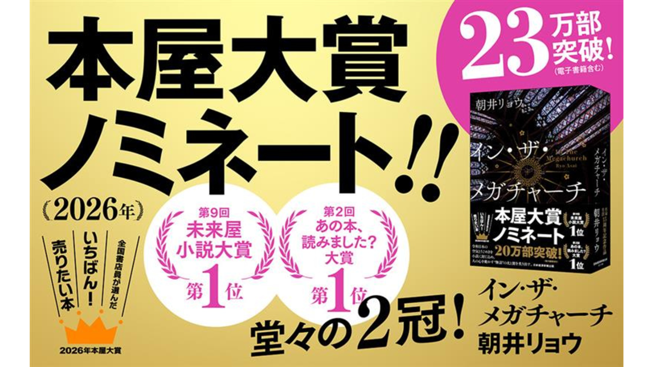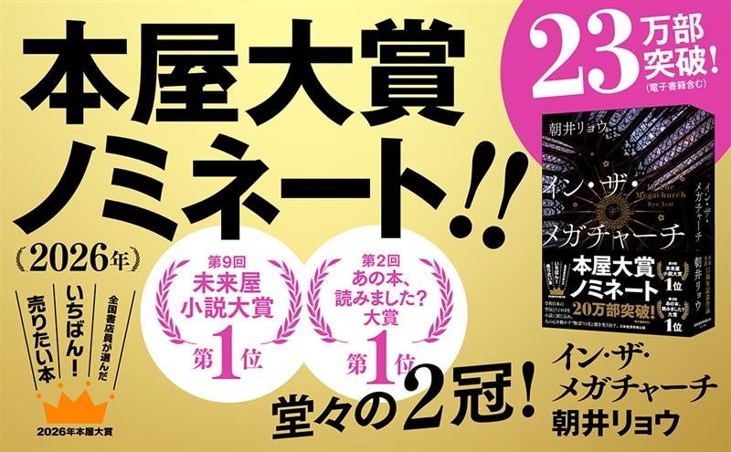 株式会社日経BP(本社:東京都港区、社長CEO:井口哲也)は、朝井リョウさんの作家生活15周年記念作品『イン・ザ・メガチャーチ』が「2026年本屋大賞」にノミネートされたことを発表いたします。