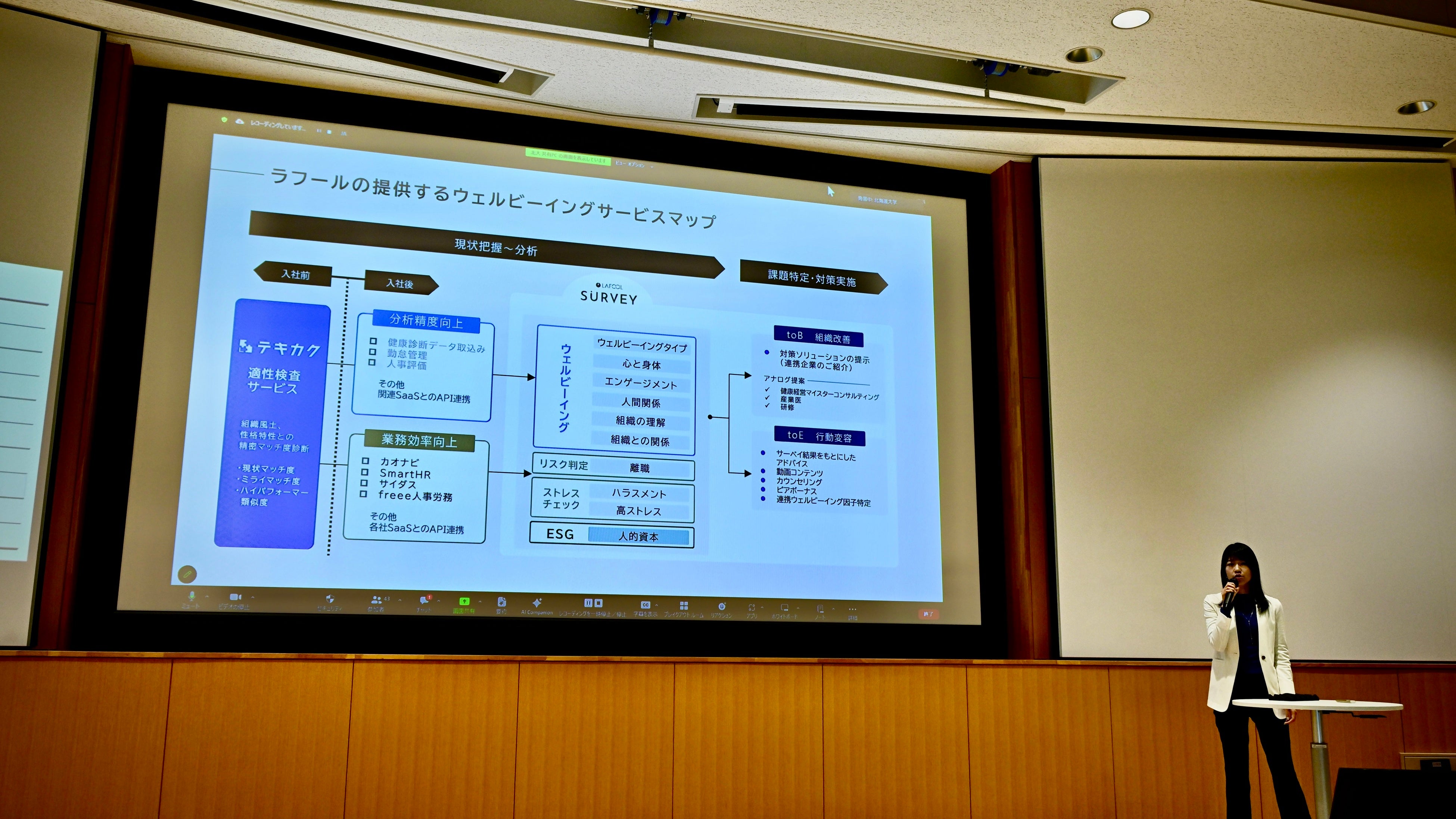 この度当社は、北海道大学COI-NEXT 「こころとカラダのライフデザイン共創拠点 」に加盟することとなり、2024年5月下旬、北海道大学にオンラインを含めた26社の参画機関が集い、各機関、取り組みを紹介する参画機関会議に参加しました。
