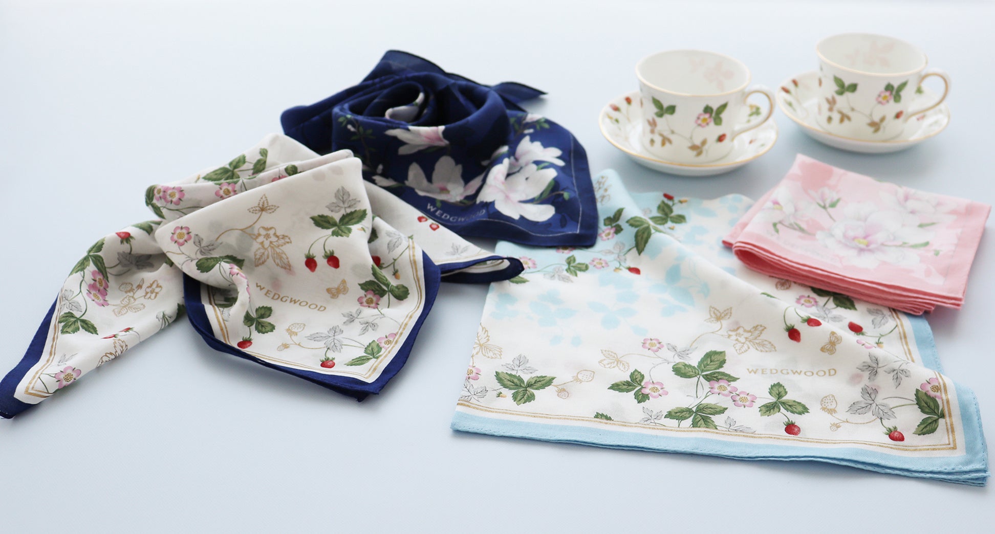 イギリスの陶磁器ブランド「ウェッジウッド」の人気柄を使用した大判ハンカチ新発売!