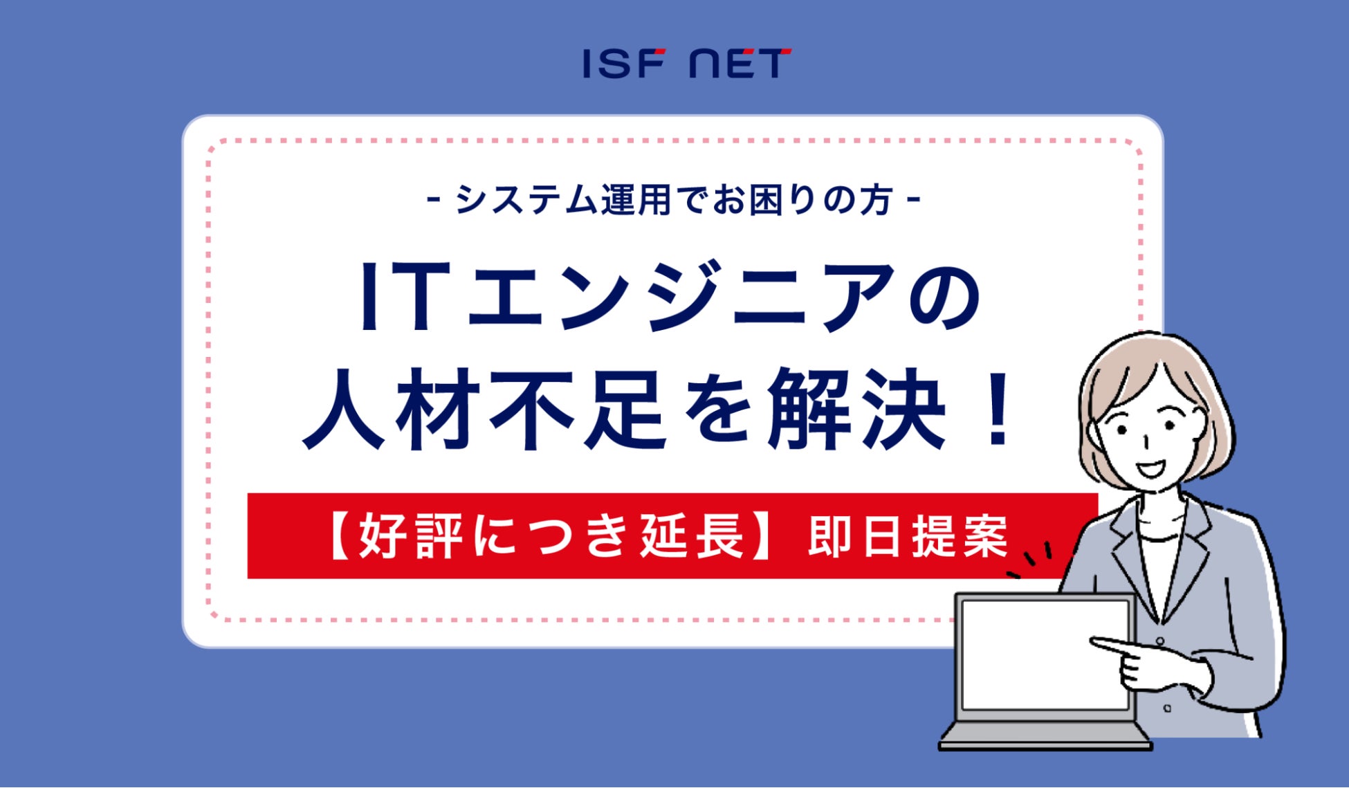多くの企業では、下半期の組織改編や新規プロジェクトの開始などで、ITエンジニア不足に悩んでいます。この課題に対してアイエスエフネットは首都圏エリアにて2023年末までの期間限定で、1日1名からIT技術者の派遣をご提案いたします。