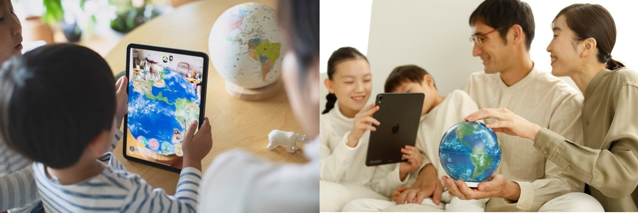 リニューアル発売から約2年、アプリをかざしてたのしめる地球儀本体は3種類に増えました。