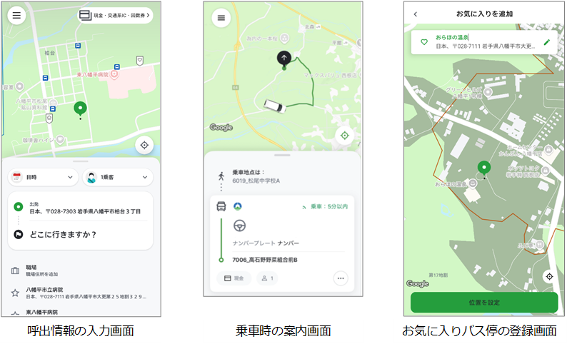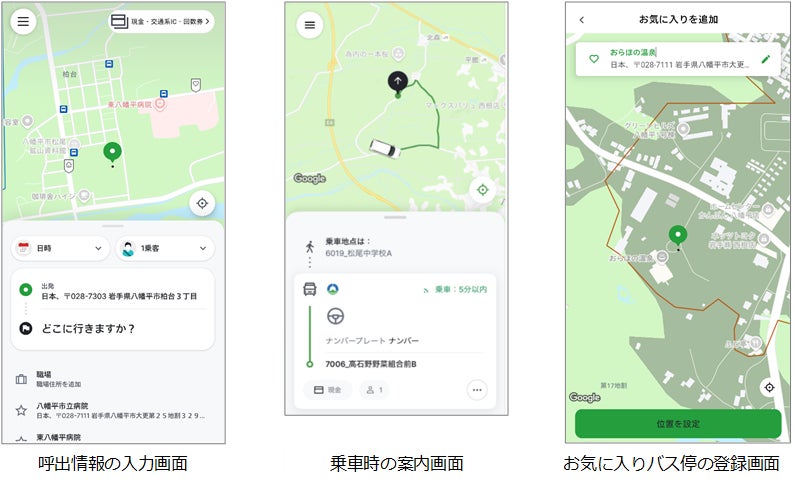 本実証運行は、八幡平市からの委託事業として、岩手県北バスが「よぶきた八幡平」の運行とシステム運用を担い、同社親会社の株式会社みちのりホールディングスがシステムの設計・開発に協力しています。また、システムはVia Mobility Japan株式会社の技術を活用しています。