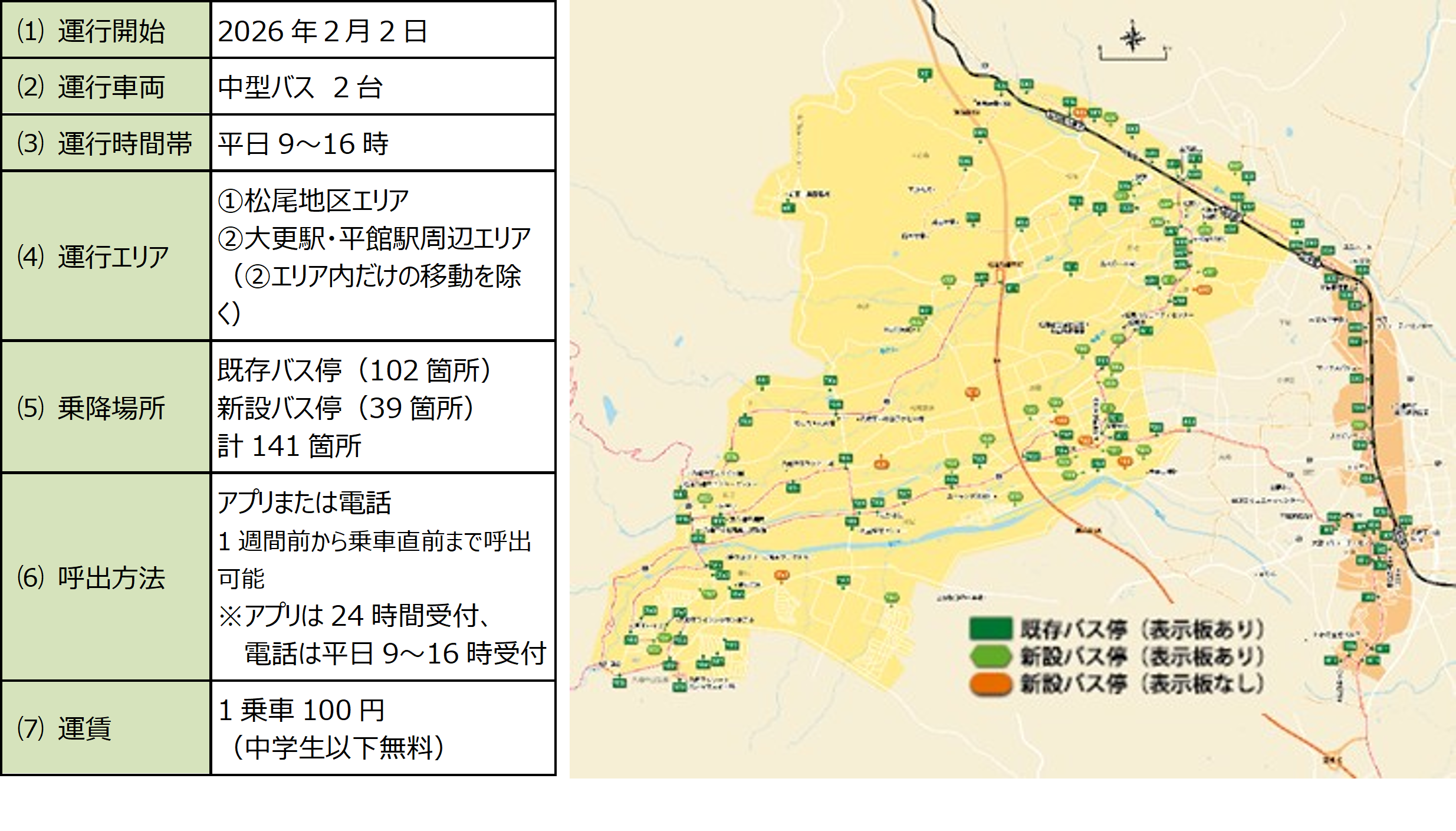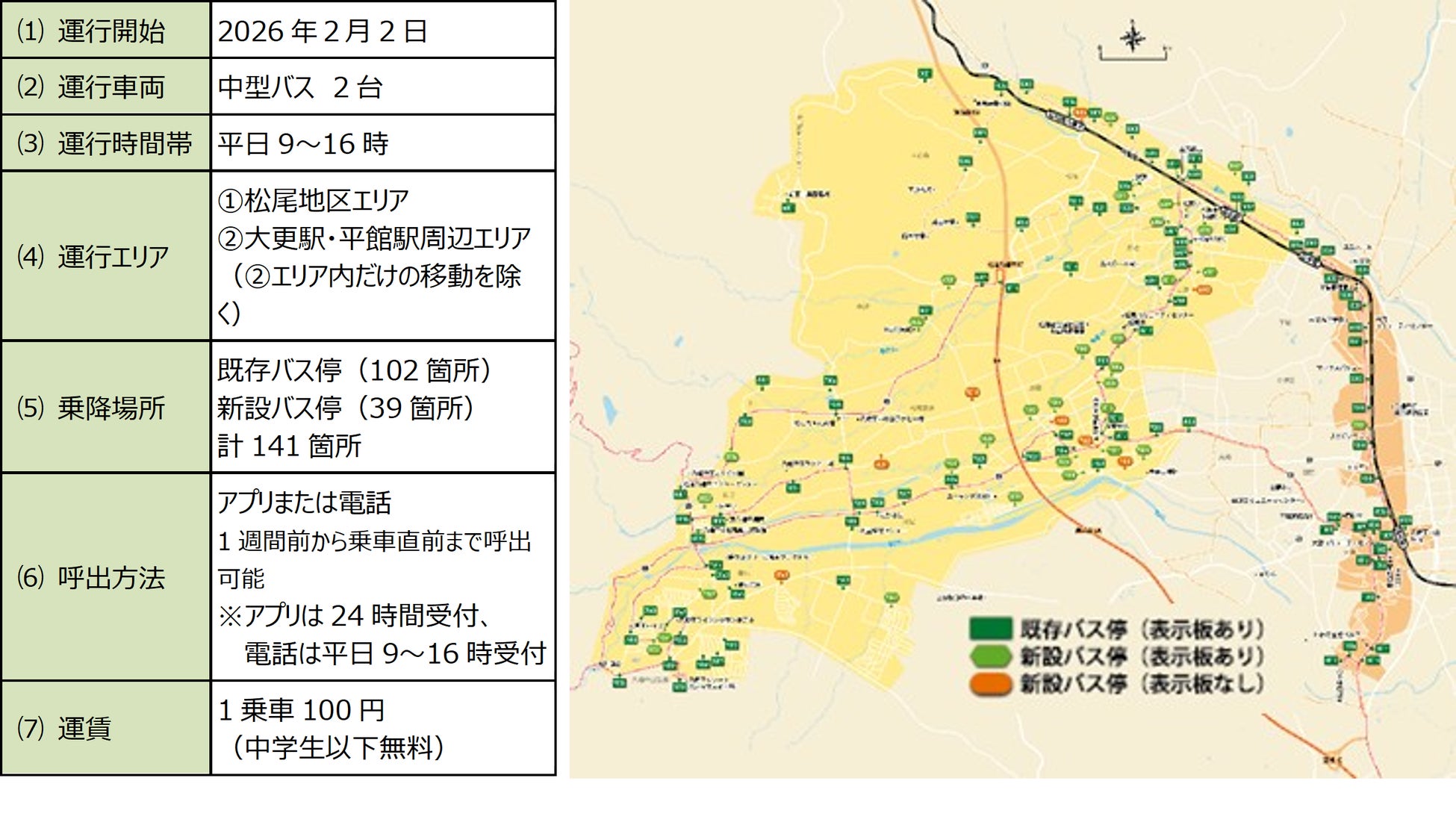 本取組は、2024年3月に策定した「八幡平市地域公共交通計画」に基づくものです。松尾地区内を運行していた八幡平市コミュニティバス大花森線と前森線の両路線を「よぶきた八幡平」に切り替えることで、松尾地区内の移動利便性を向上させます。さらに、「よぶきた八幡平」に加えて、他の八幡平市コミュニティバス路線と岩手県北バスが運行している路線バスも移動手段として検索できることから、松尾地区内だけではなく、八幡平市西根地区や八幡平市外との間の公共交通利用も促進させることを目的とした実証事業です。