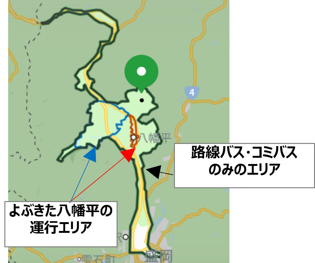 これにより、「よぶきた八幡平の運行エリア外を含む八幡平市内の移動」や「八幡平市内と盛岡市内を結ぶ移動」についてもスムースな移動環境を提供します。